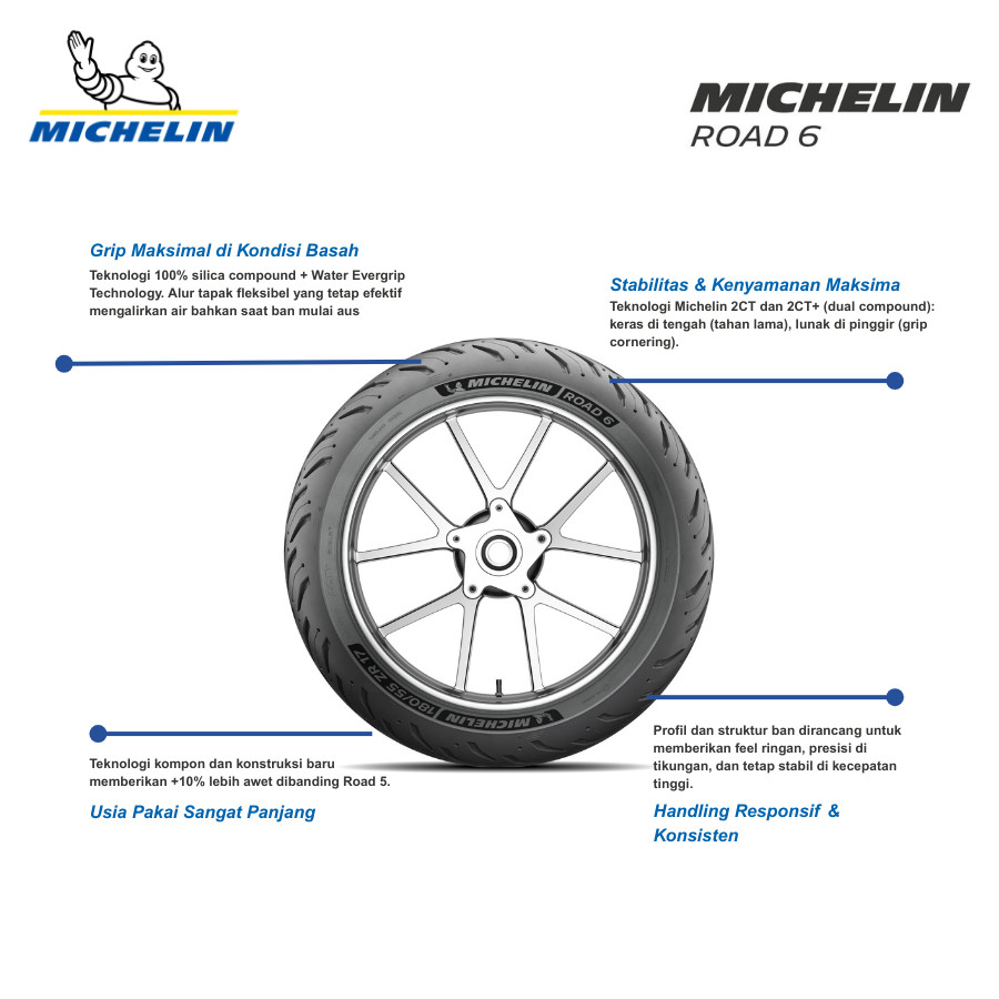 BAN MOTOR RING 17 MICHELIN ROAD 6 190 55 17 170 60 17 120 60 17 TUBELESS ORIGINAL