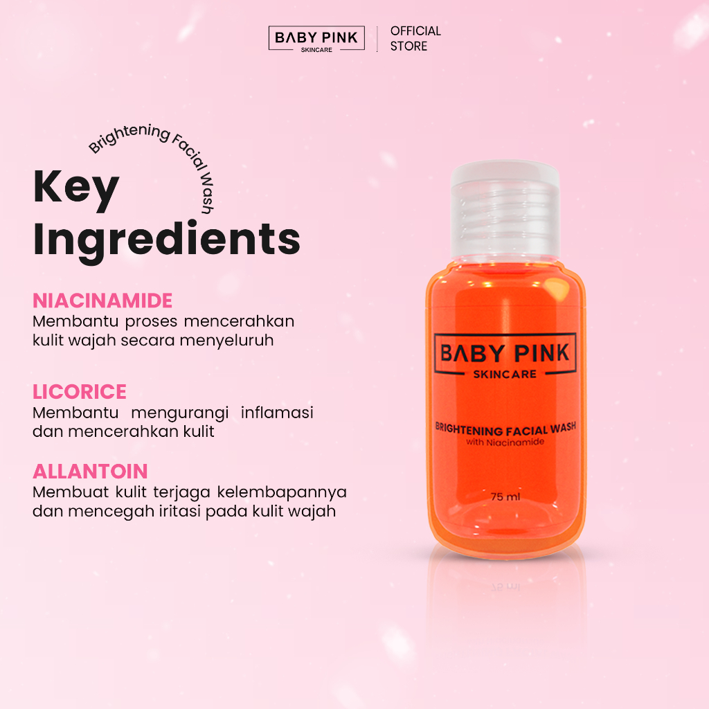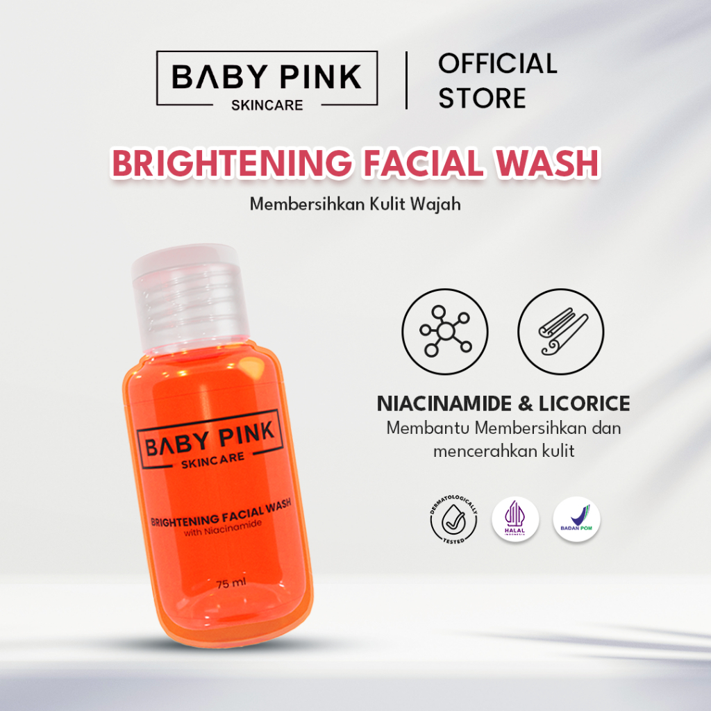 Baby Pink Skincare Brightening Facial Wash 75Ml, Dengan Niacinamide & Licorice, Bantu Cerahkan Kulit.