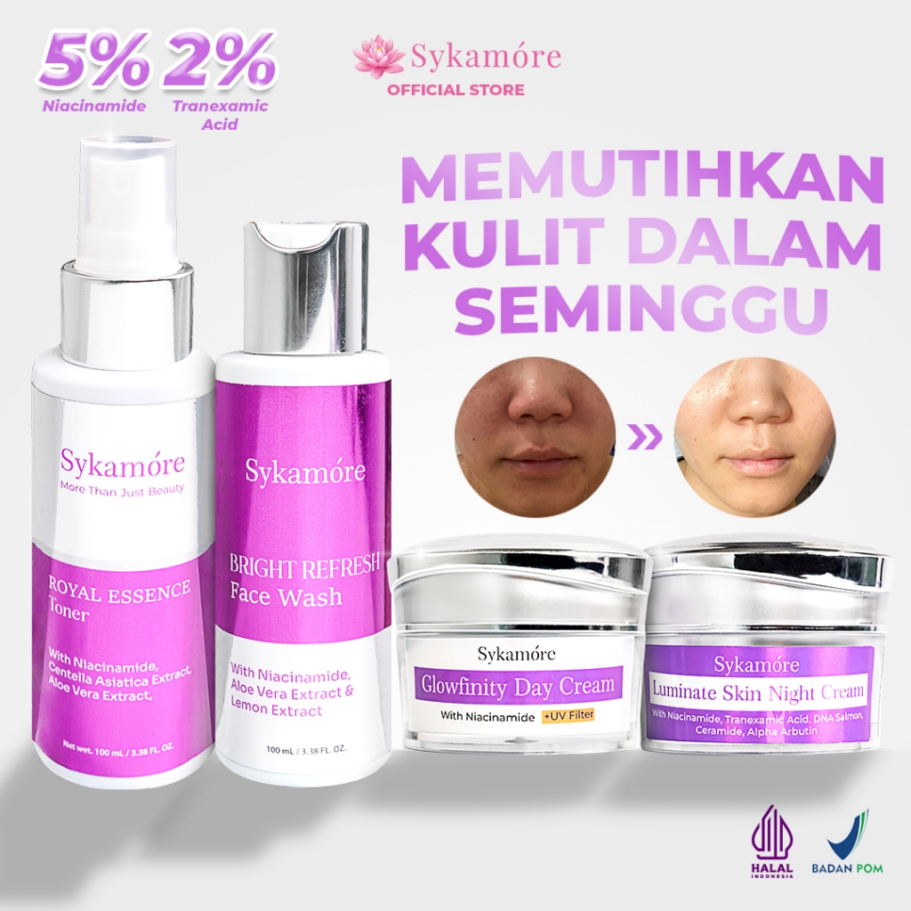 Sykamore Paket Brightening Series Skincare Mencerahkan Wajah With Niacinamide 5 PERSEN & Dna Salmon