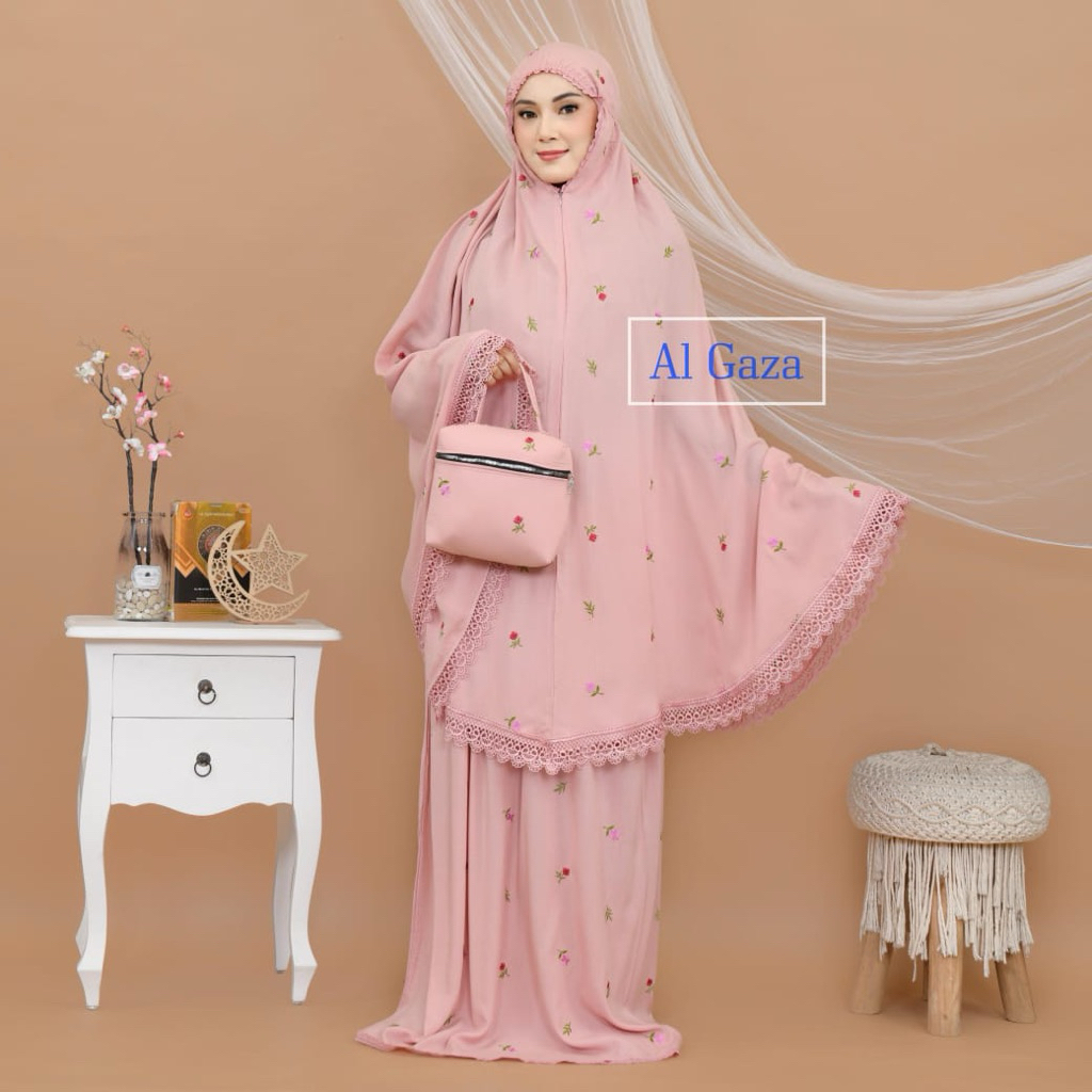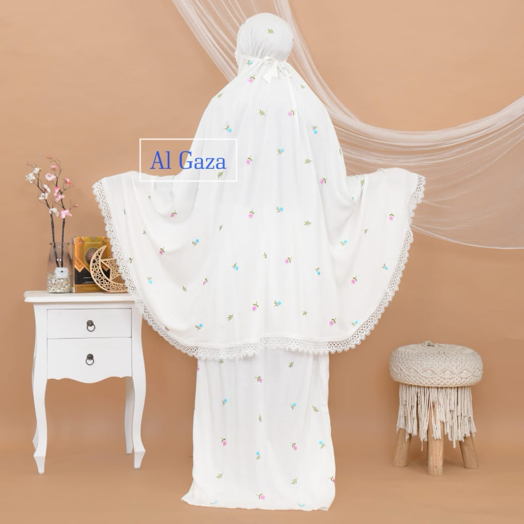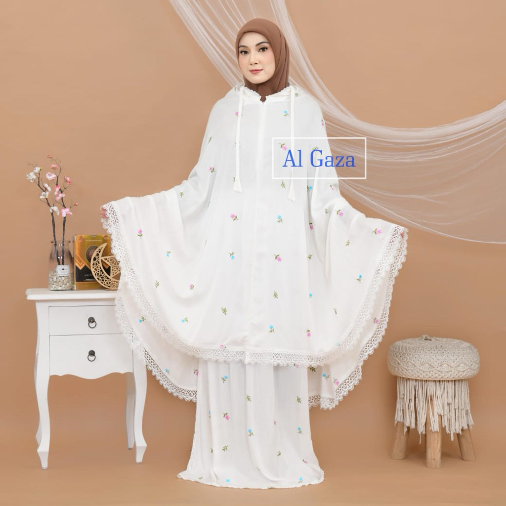 Mukena 2In1 Rayon Bordir Moana Bunga Cantik Renda Senada | Al Gaza