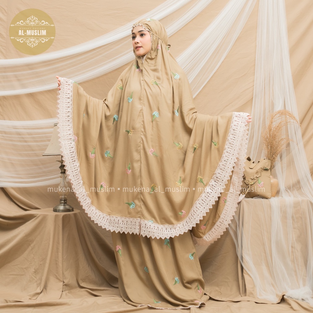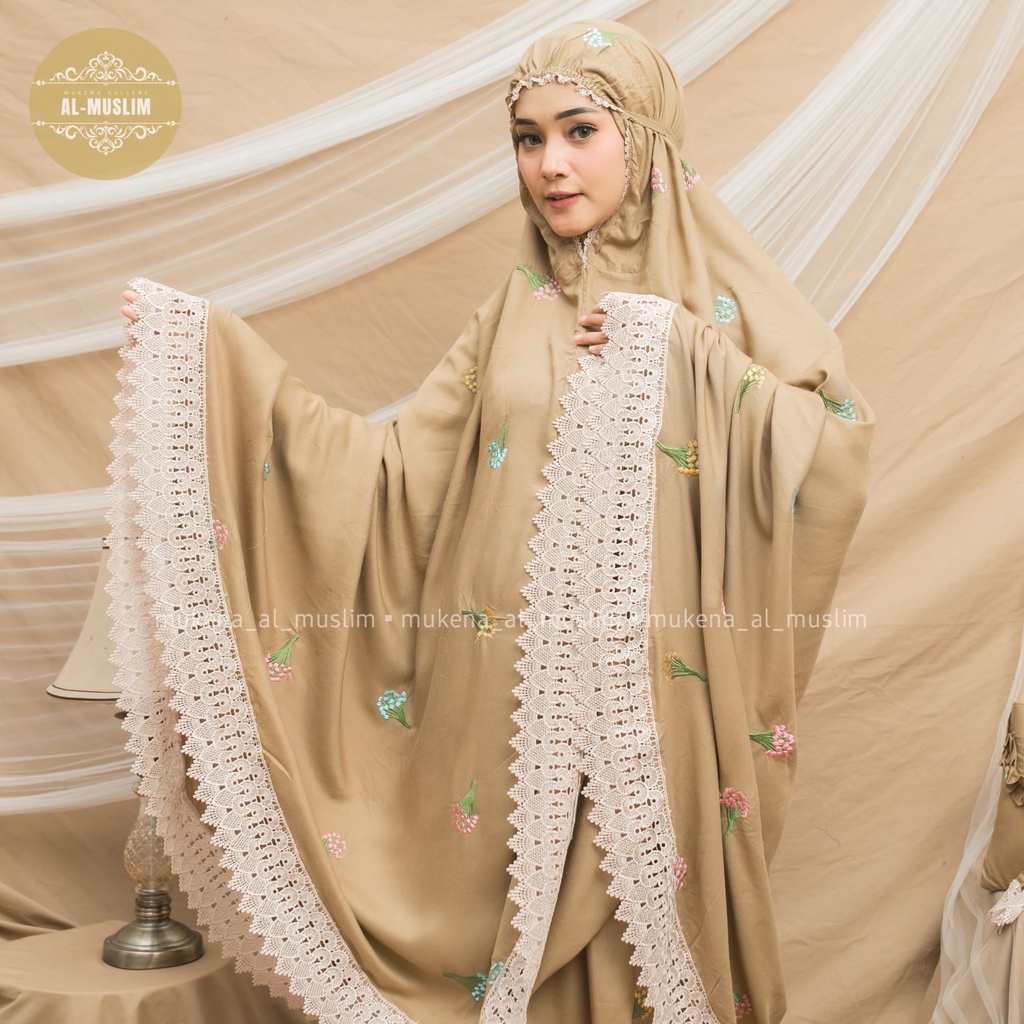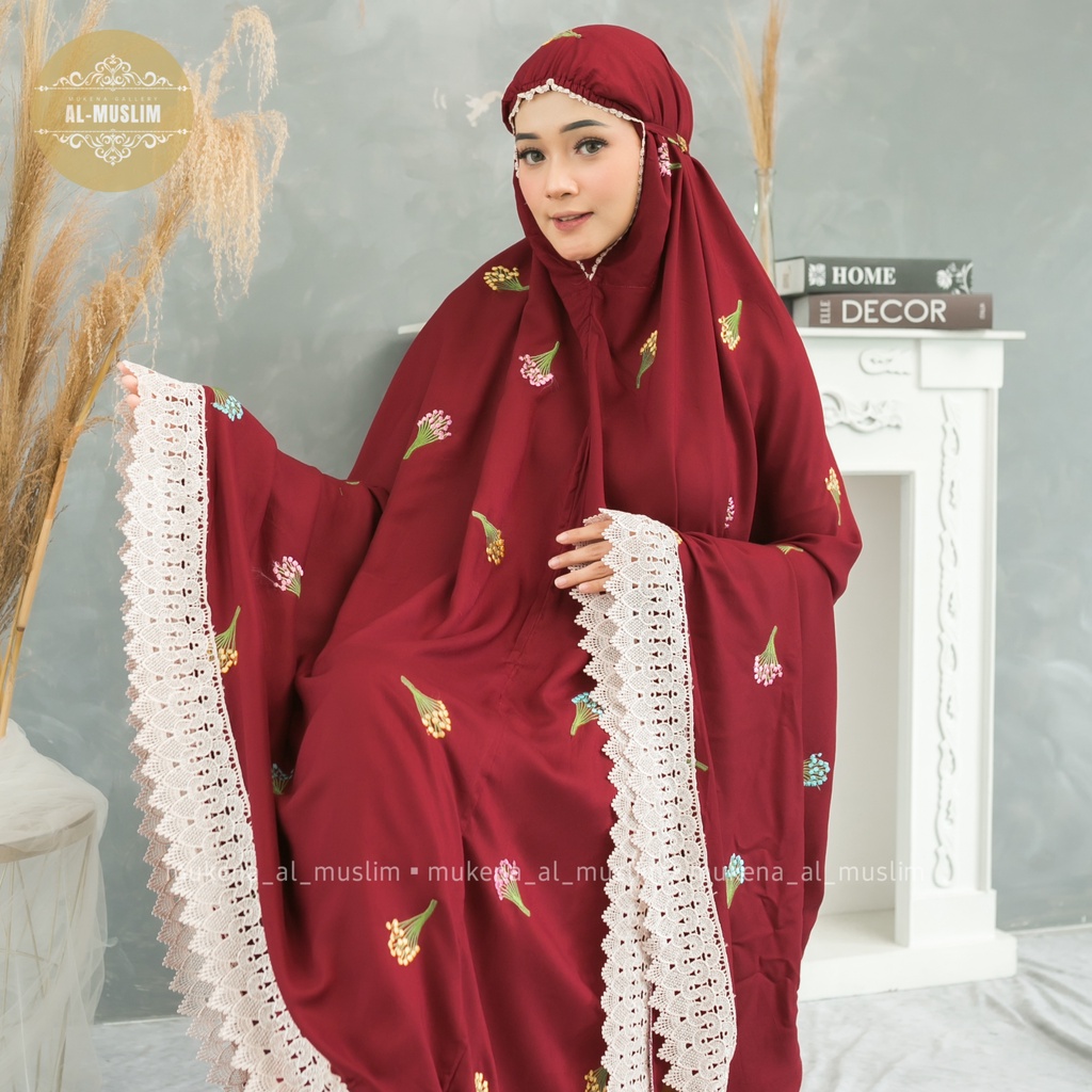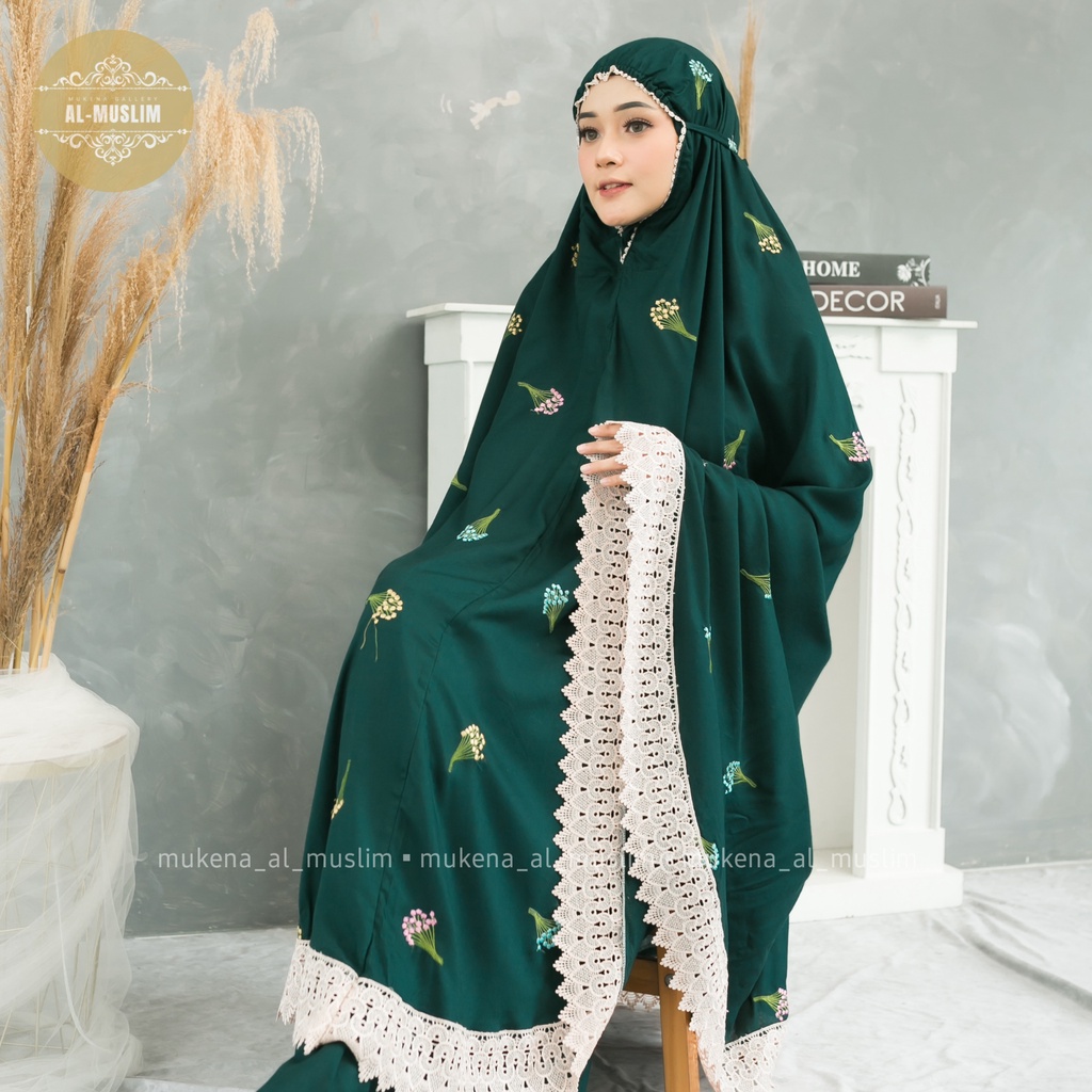 Almuslim Mukena Dewasa Rayon Premium Motif Bordir Bunga Camila Renda Jumbo