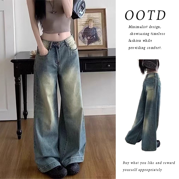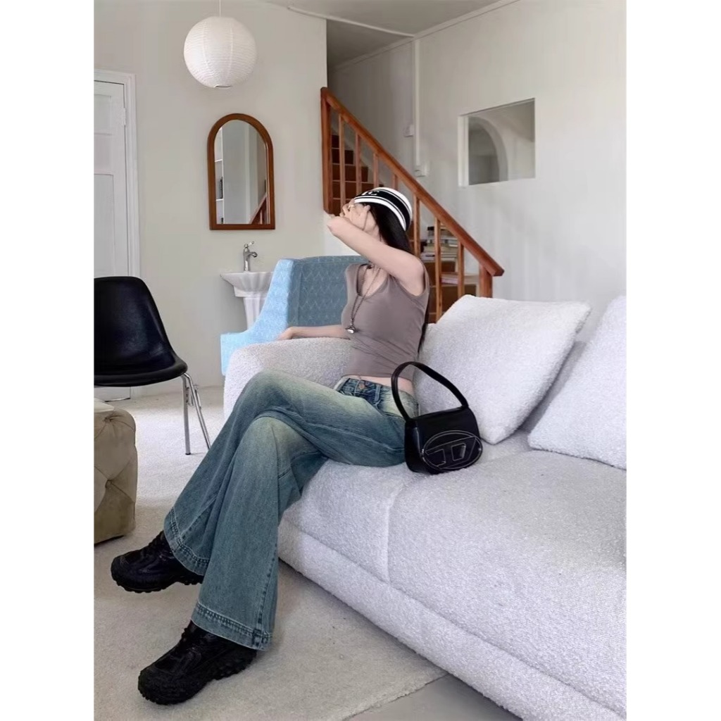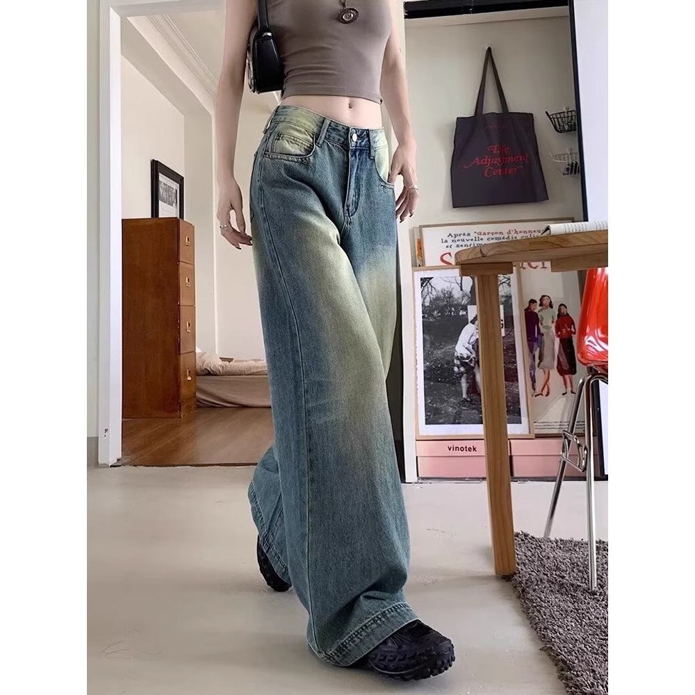 Celana Jeans Wanita Highwaist Jeans Loose Biru Retro