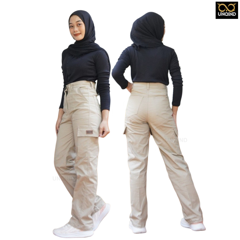 Unqind - Celana Cargo Wanita Highwaist Super Premium Satin Korean Style