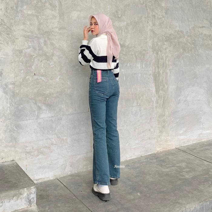 HANGOUT - JINISO STRETCH CUTBRAY POCKET CELANA JEANS WANITA HIGHWAIST - 710 - 720, 27