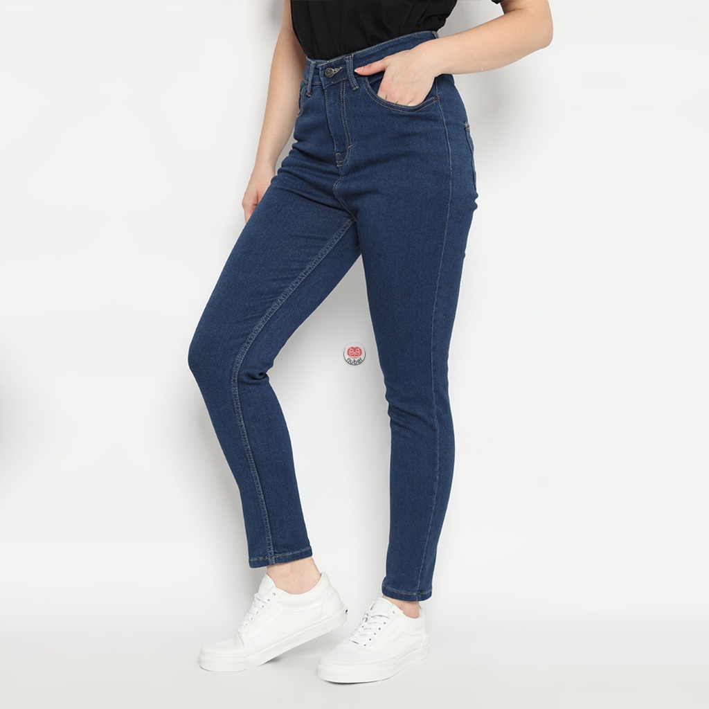Nuber Skinny Active High Waist Celana Panjang Kantong Depan Jeans Tulip Navy Hitam Putih Biru