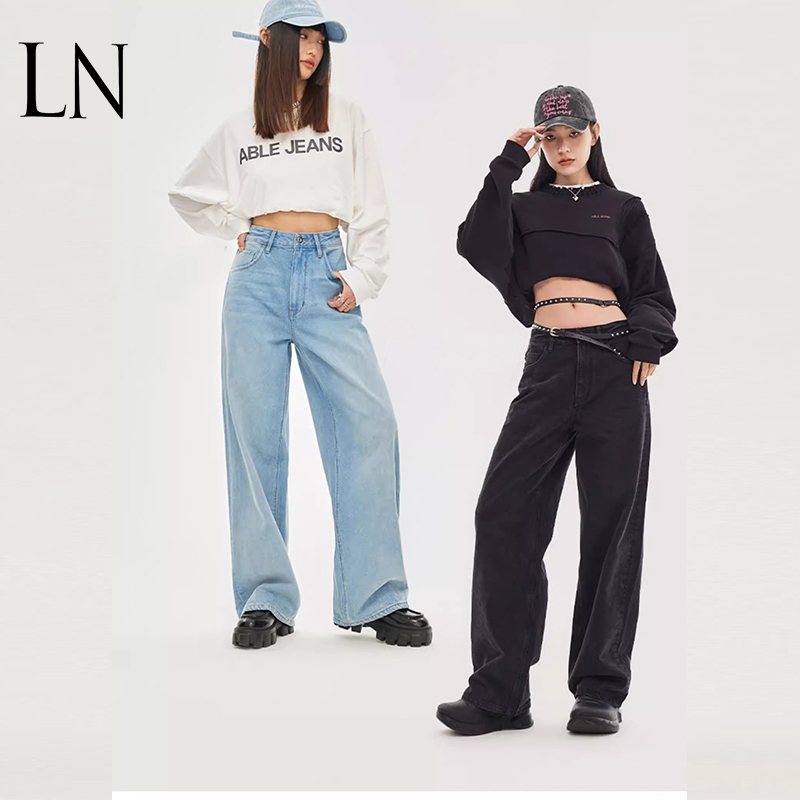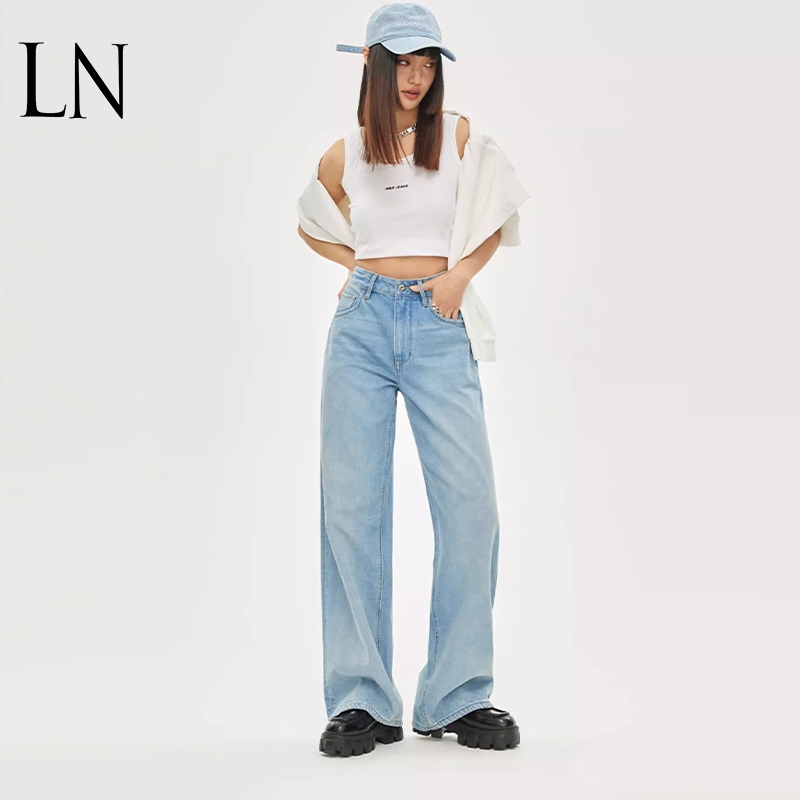 Ln.Rltr Official Store-Celana Jeans Wanita Kekinian Highwaist Kulot Wide Leg Baggy Celana Panjang Jeans Non Stretch Vint