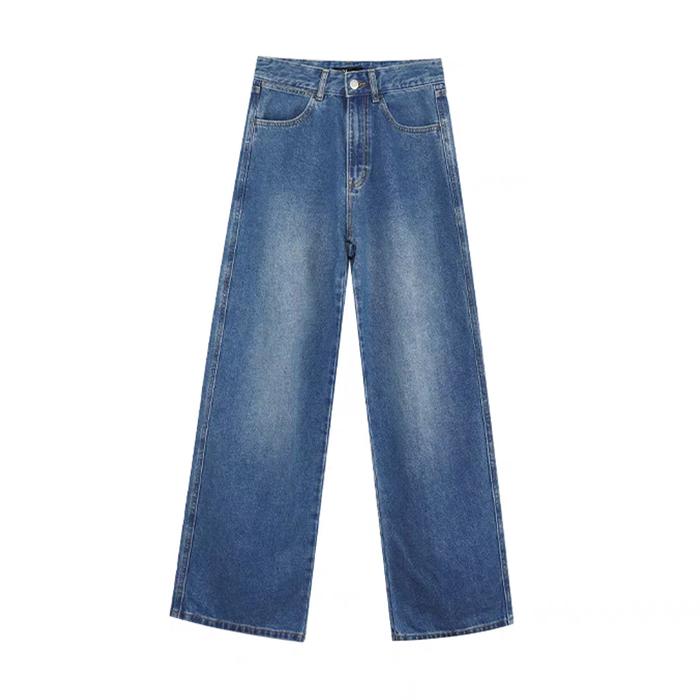 LULU-JEANS NEW KOREAN STYLE HIGH WAIST LOOSE MURAH CELANA JEANS PANJANG WANITA - PREMIUM BIRU RETRO8563, S