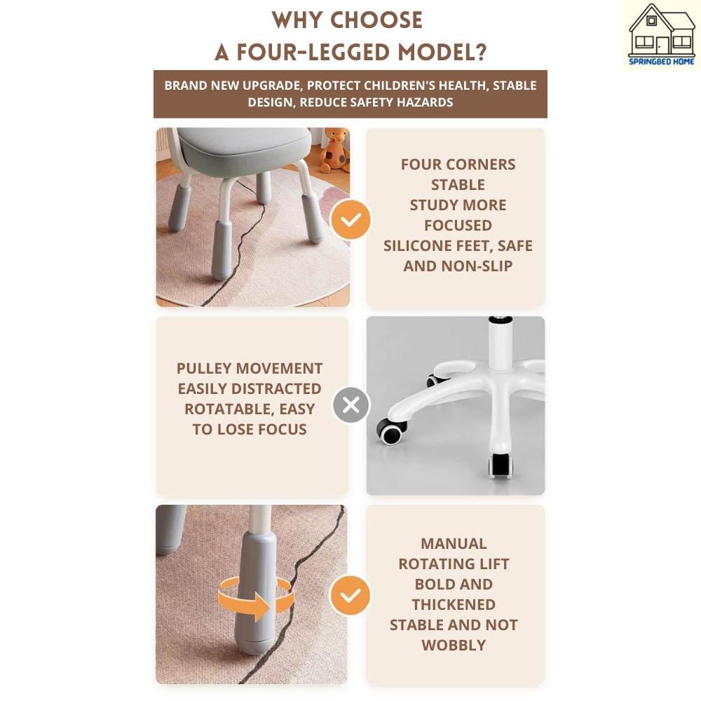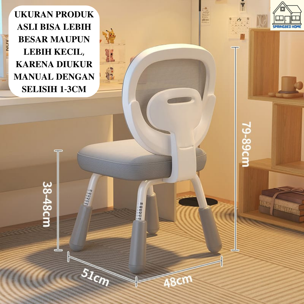Kursi Belajar Anak Adjustable Tinggi Kursi Nyaman & Aman untuk Sekolah/Rumah Cocok Usia 3-12 Tahun
