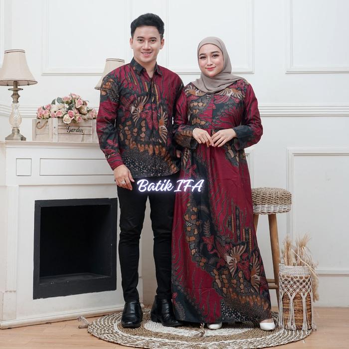 BAJU BATIK COUPLE MODERN - SARIMBIT BATIK KONDANGAN KEKINIAN - COUPLE GAMIS BATIK DAN KEMEJA POLYESTER - GAMBAR 1, KEMEJA M GAMIS STANDAR