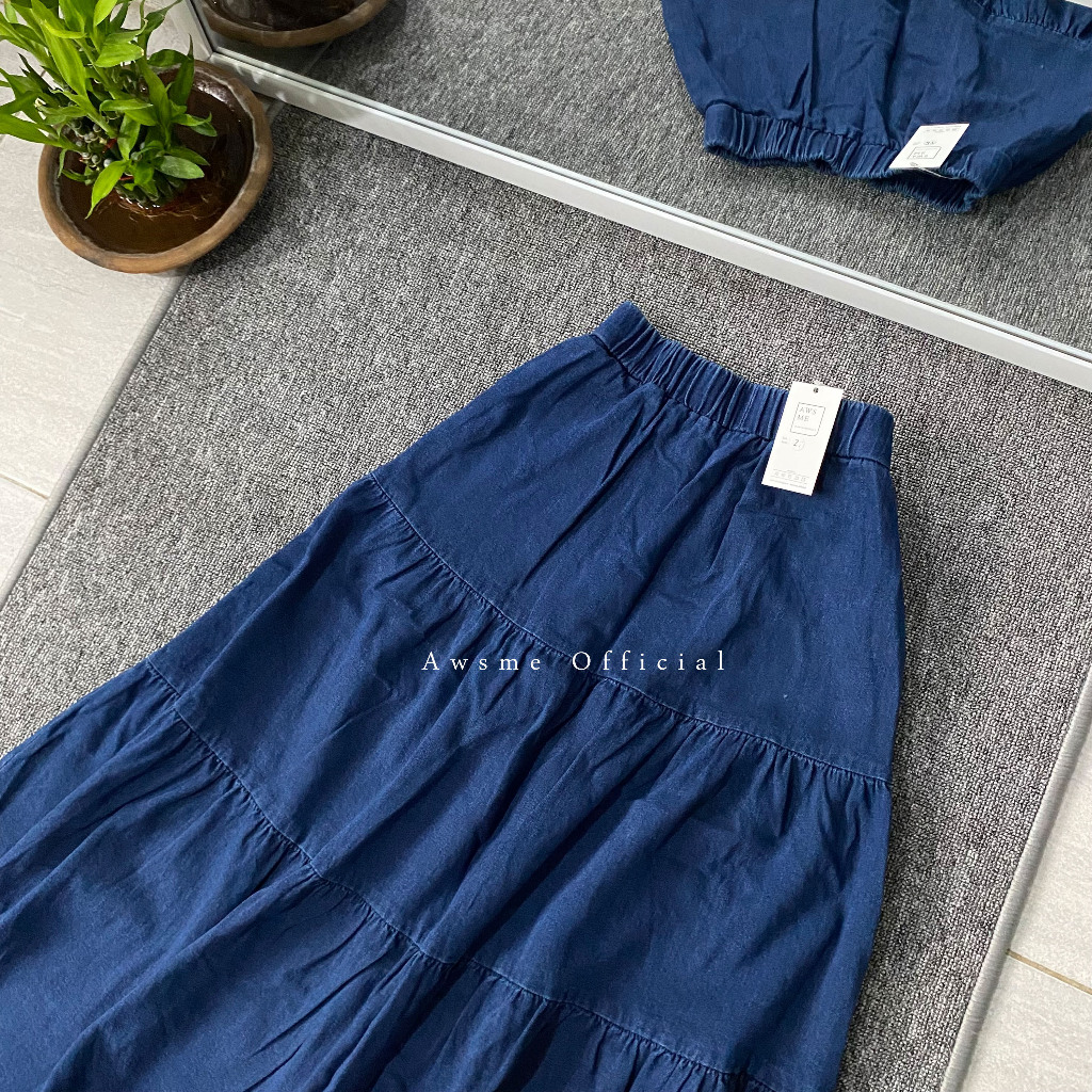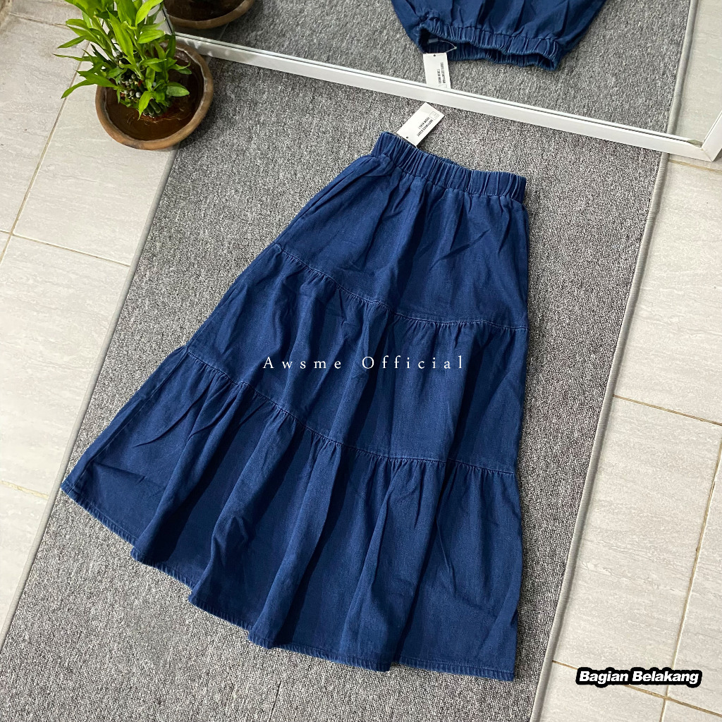 Awsme - Rok Denim Ara / Ruffle Skirt Basic Warna Biru