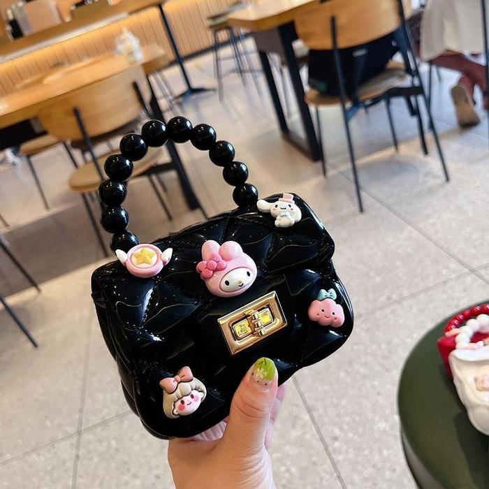 BISAT5640 TAS SELEMPANG JELLY KARAKTER TAS HANDBAG JELLY BAG MUTIARA GAYA KOREA TAS JELLY GLOSSY MINI BONEKA ANAK FASHION - PUTIH