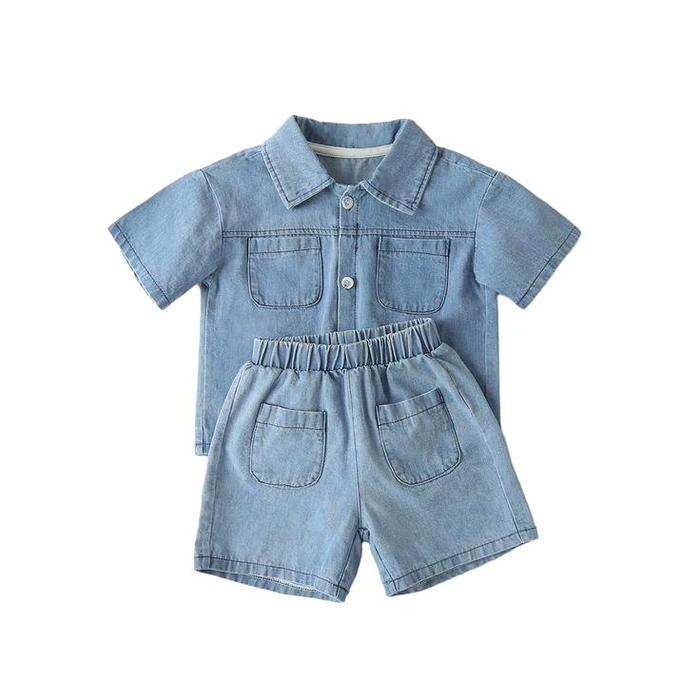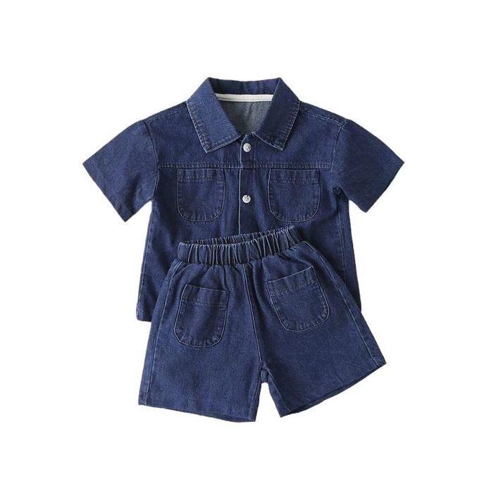 SETELAN ANAK LAKI-LAKI MODEL SET KEMEJA JEANS J53 1 - 5 TAHUN - J53 BIRUMUDA, SIZE 2