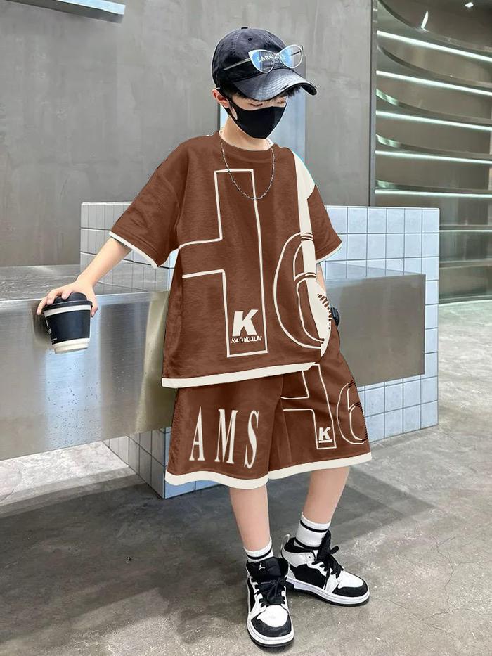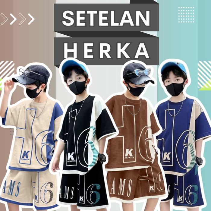 AMSPRO - SETELAN ANAK LAKI-LAKI USIA 10 TAHUN 1 SET OOTD ANAK KECE HERKA BAJU ANAK LAKI LAKI CELANA PENDEK KAOS MOTIF SABLON FASHION - HITAM, 6