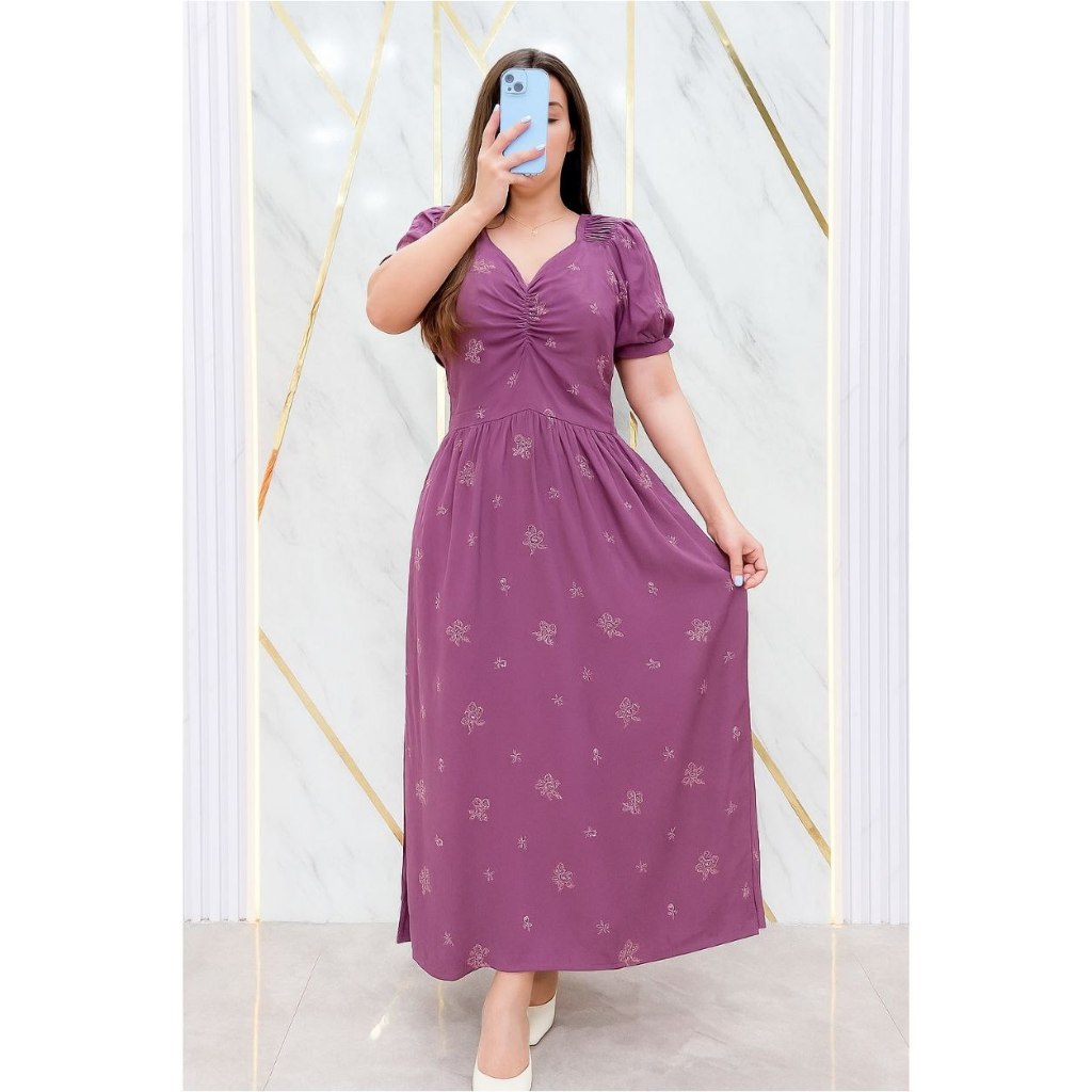 Daster Madam Midi Dress Karet Busui Lengan Pendek Gaun Batik Wanita Rayon Super Premium All Size
