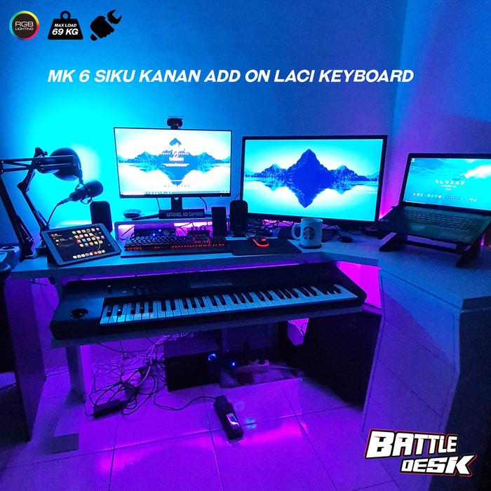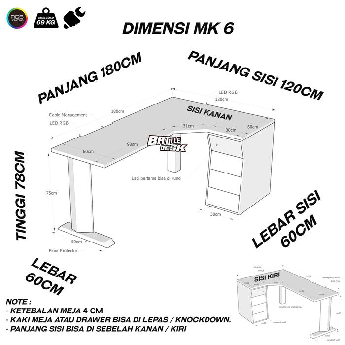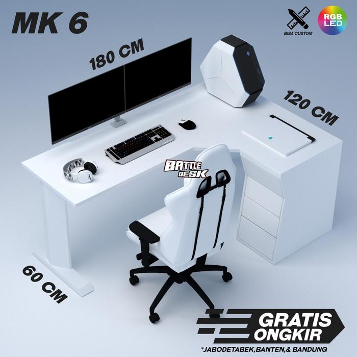 MEJA KOMPUTER GAMING PC DESK RGB MURAH 180X60 - BATTLEDESK MK 6 HITAM - HITAM