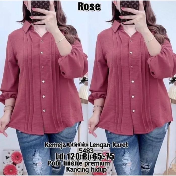 KEMEJA KERJA WANITA BAHAN CRINGKLE AIRFLOW PREMIUM - REMPEL HITAM, M
