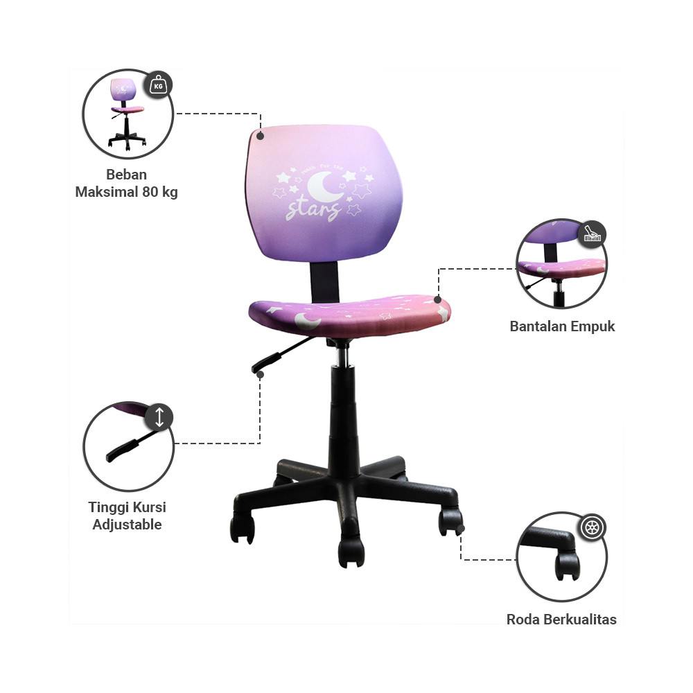Kursi Belajar Anak Star - Ungu Tempat Duduk Dengan Roda Kids Study Chair Furniture Indoor Kamar Anak Kursi Putar
