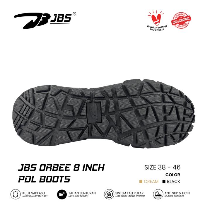 SEPATU PDL JBS ORBEE 8 INCH WARNA HITAM TALI PUTAR TACTICAL TALI PUTAR PDL BOOTS HIGH KANTORAN LOKAL BRAND SEPATU PDL SHOES PRIA - HITAM, 40
