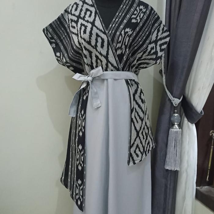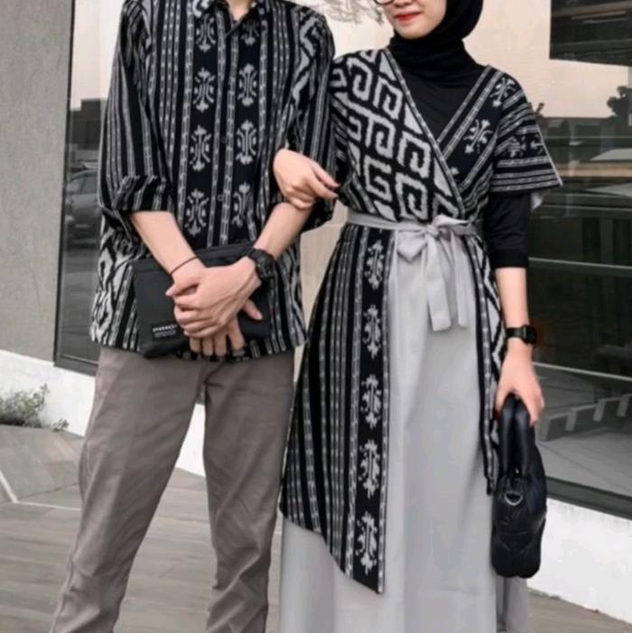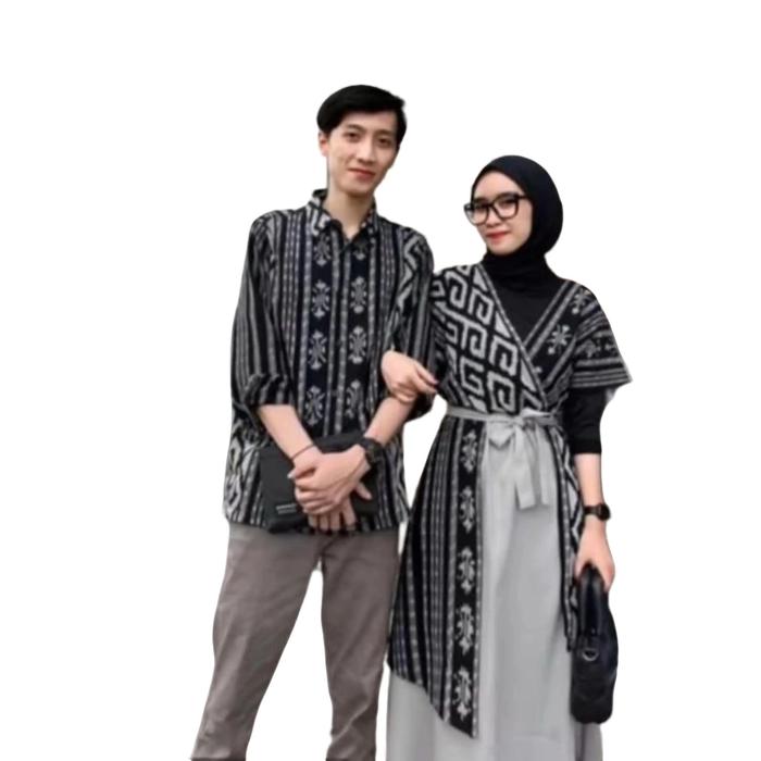 SET COUPLE DRESS ANDIN BAJU TENUN LEBARAN PASANGAN BATIK KEMEJA KONDANGAN SARIMBIT WANITA BATIK - DRESS NAOMI HITAM-ABU, S