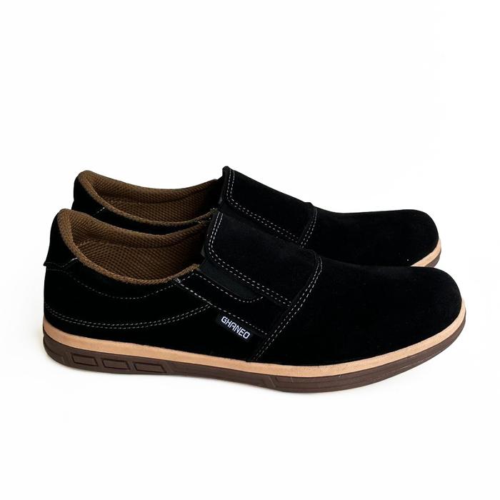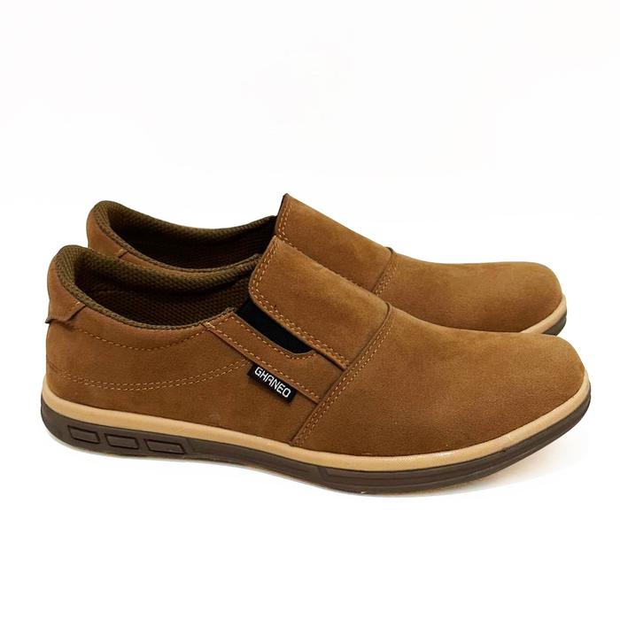 GHANEO SEPATU SLIP ON CASUAL KULIT SUEDE UNTUK KERJA DAN SANTAI UKURAN 39-43 G 22 SHOES KARET PRIA - TAN, 39