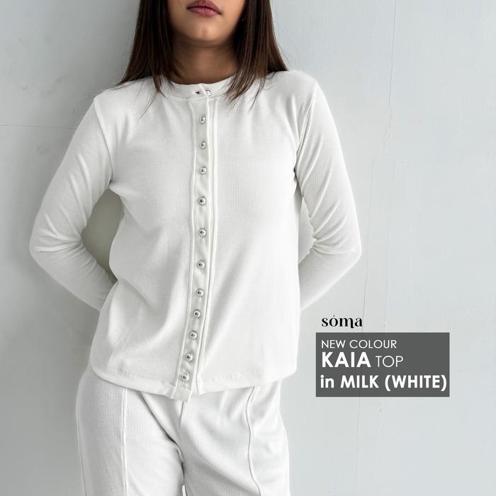 KAIA T0P ATASAN KNIT WANITA LENGAN PANJANG BASIC KOREAN T0P SUMMER BAJU KNIT KANCING RIB WANITA LONG SLEEVE SOMA STRETCH KNITWEAR - OATMEAL, ALLSIZE STRETCH