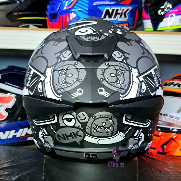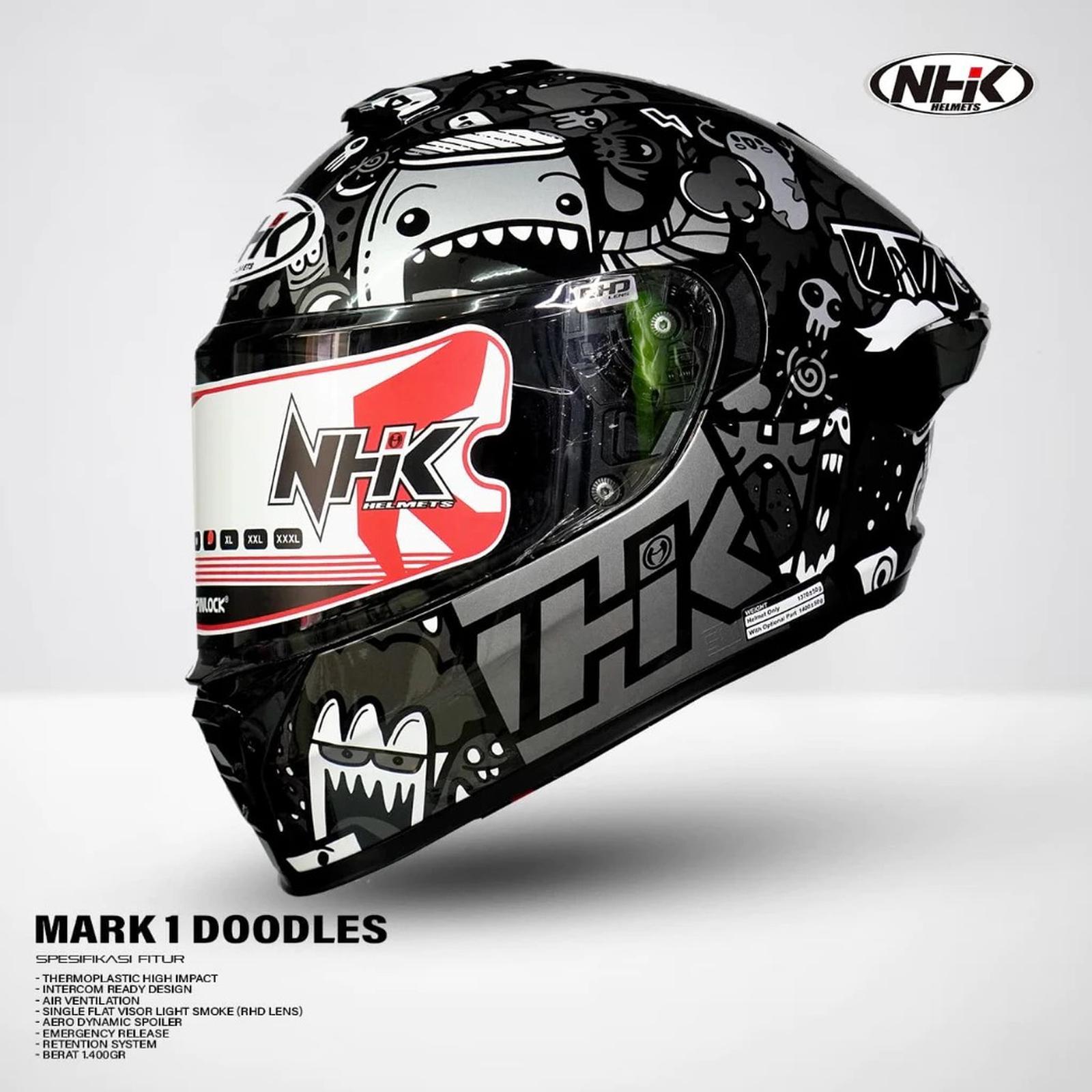 HELM NHK MARK 1 DOODLES BLACK SILVER SINGLE VISOR RHD LENS LIGHT SMOKE FULL FACE ORIGNAL SNI - S