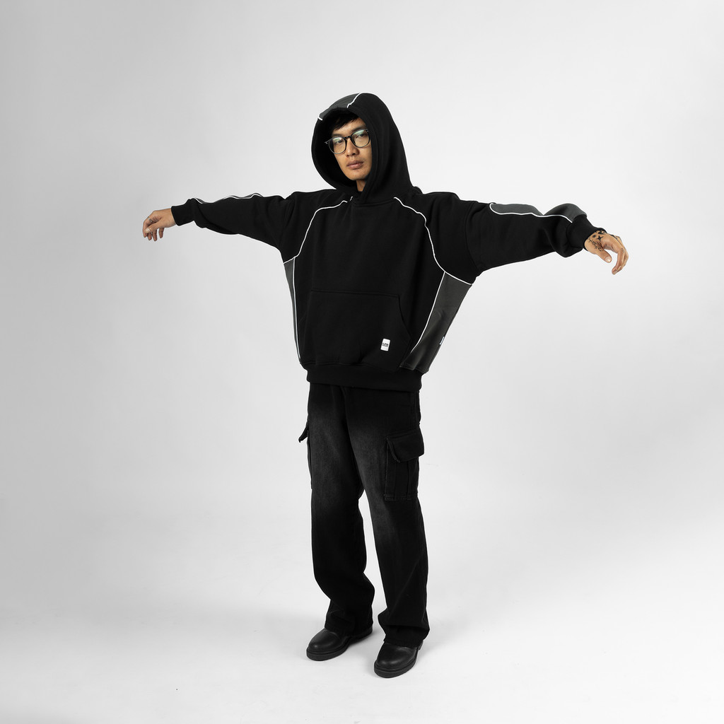 HLPD WeirdWorld Jaket Hoodie Boxy Kombinasi Pria Wanita Sweater Valez - Polos Black
