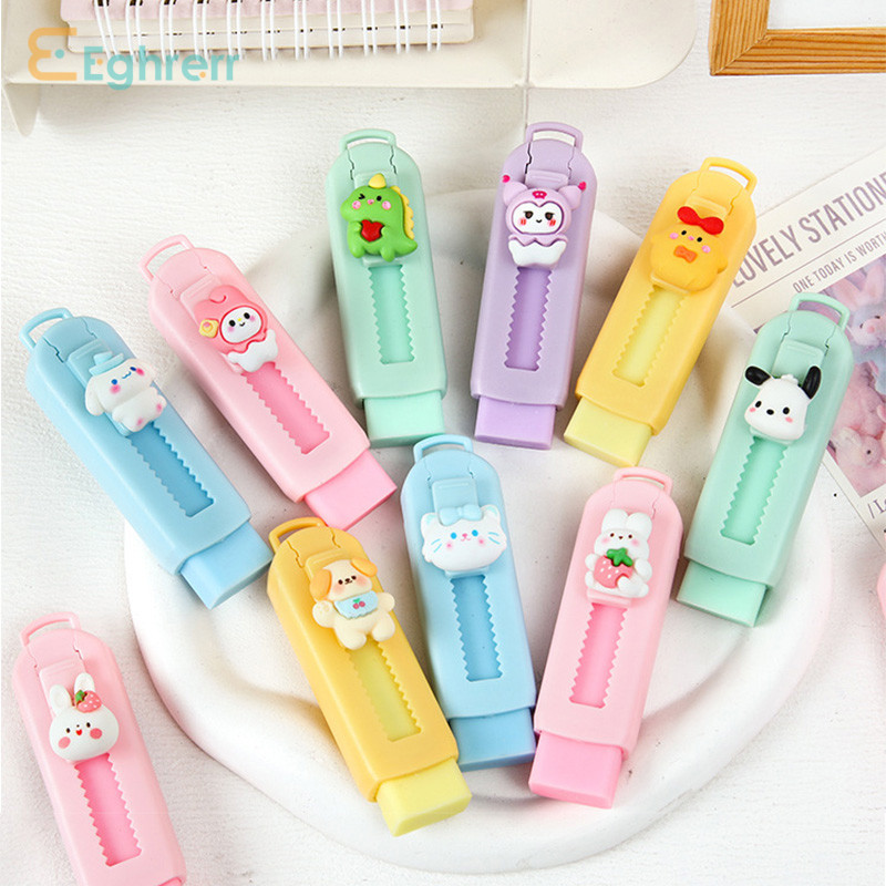 Eeghrerr Cute Cartoon Macaron Color Eraser Sanrio Retractable Push Pull 4B Student Exam Eraser