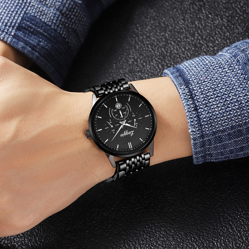 Loggio Jam Tangan Pria Original Display Kuarsa Cahaya malam Anti Air Tali Stainless Steel Santai Mode Jam Tangan Cowok
