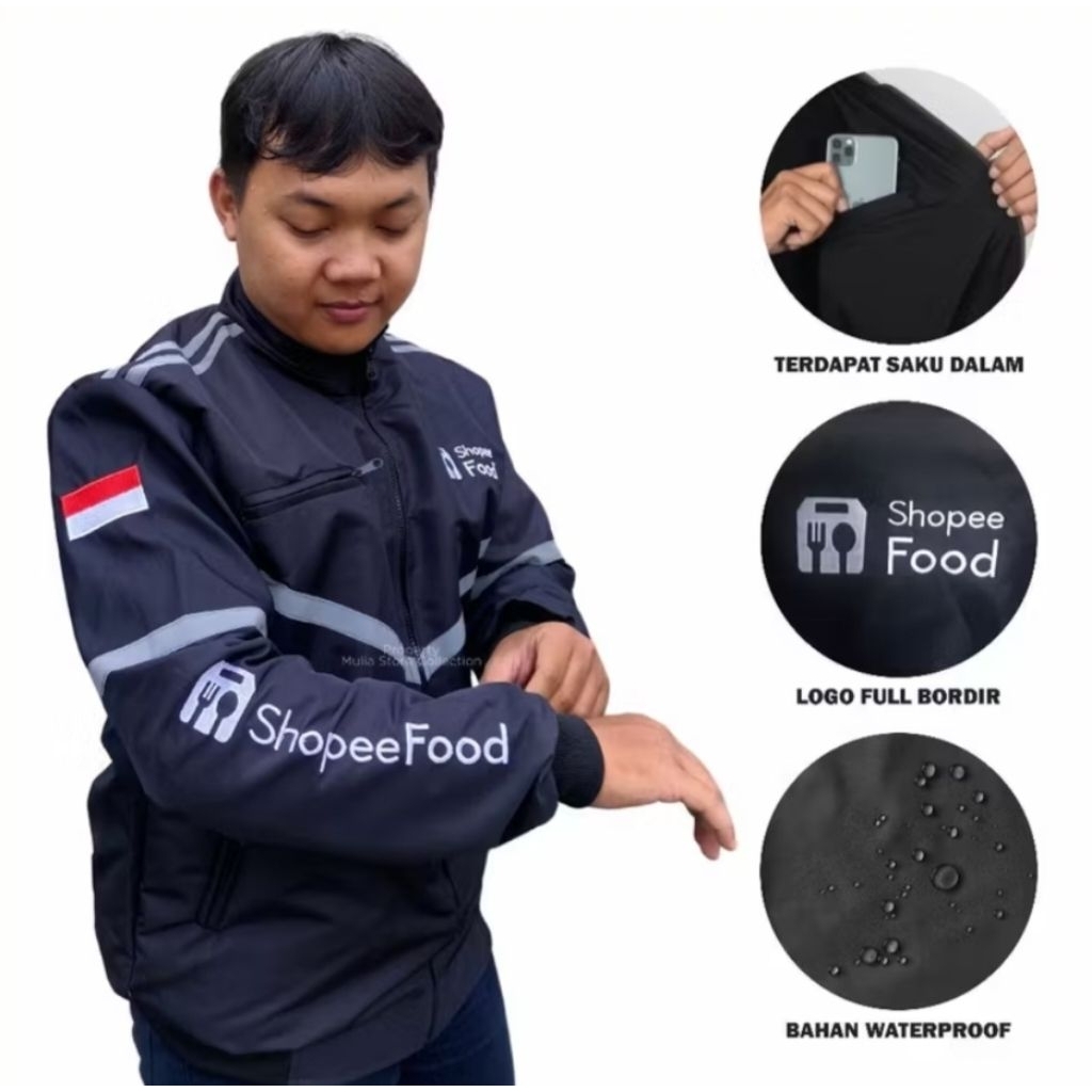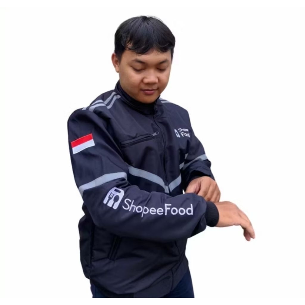 Jaket Driver Shopeefood Full Hitam Bordir Bahan Adem Tebal Anti Air