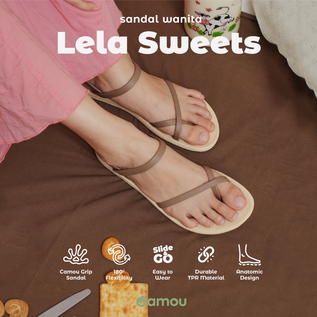 Lela Sweets Sandal Tali Silang Anti Air Sandal Wanita Terbaru Nyaman Full Karet Tidak Licin - Camou