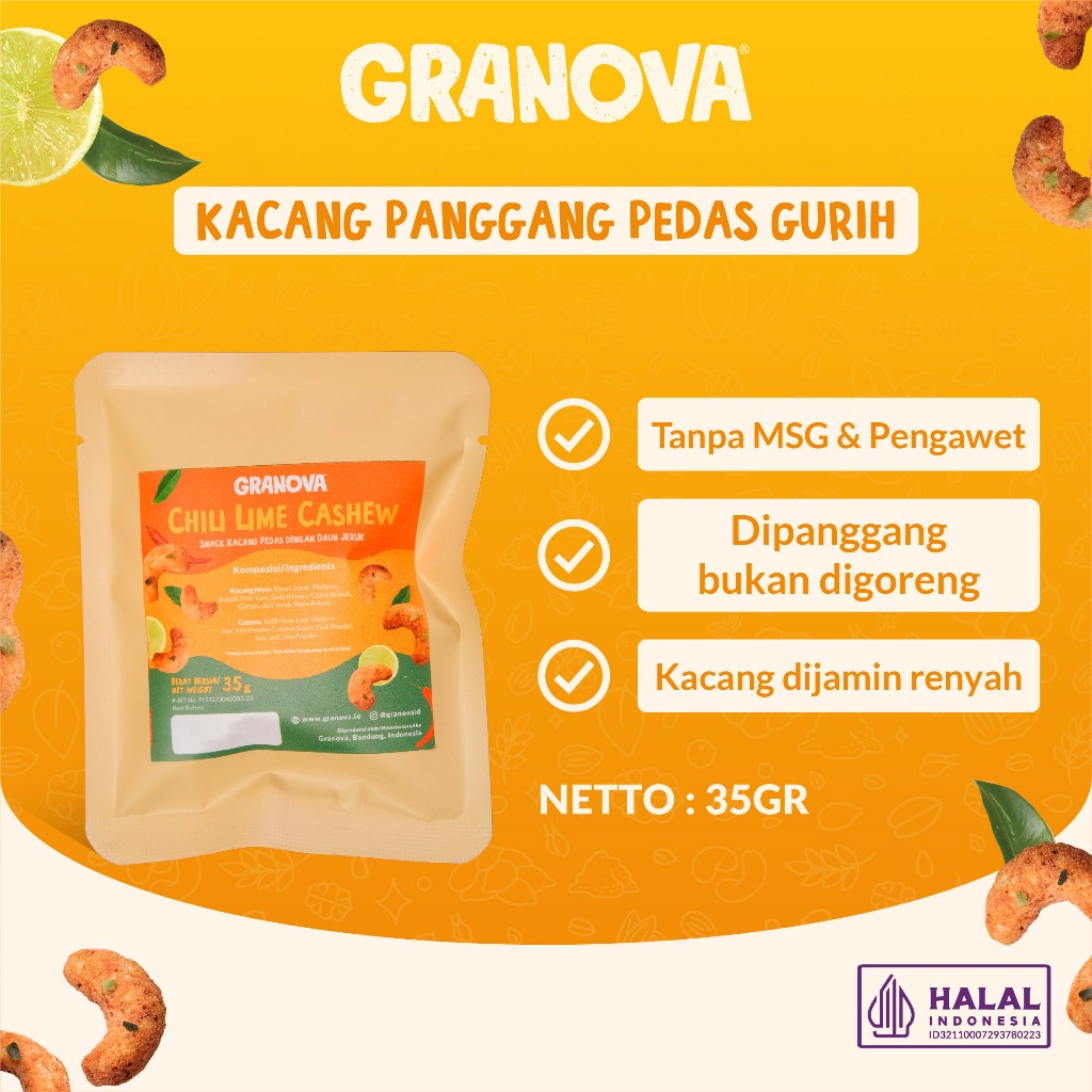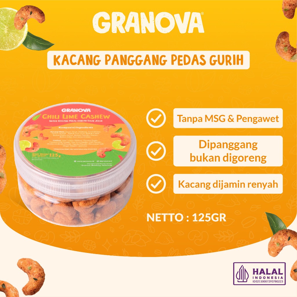 Granova - Kacang Mede / Mete Panggang Premium Gurih Asam Pedas 125gr / Roasted Chili Lime Cashew (Tanpa MSG)