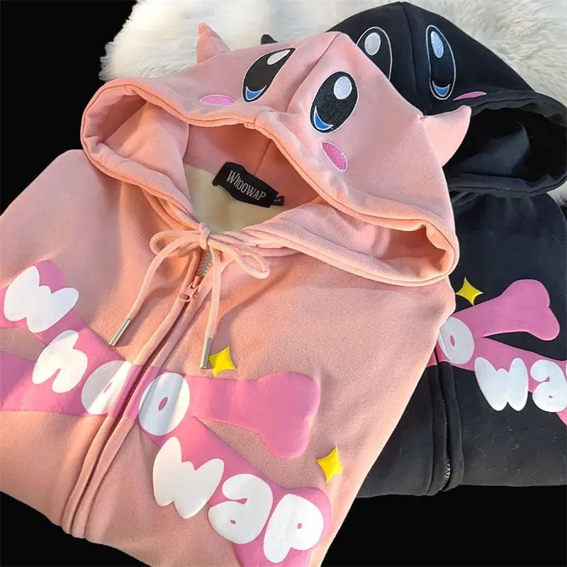 Vallina Outfit - Whoo Wap Zip Jacket Hoodie Cutes Outerwear Remaja Wanita Korean Style Premium
