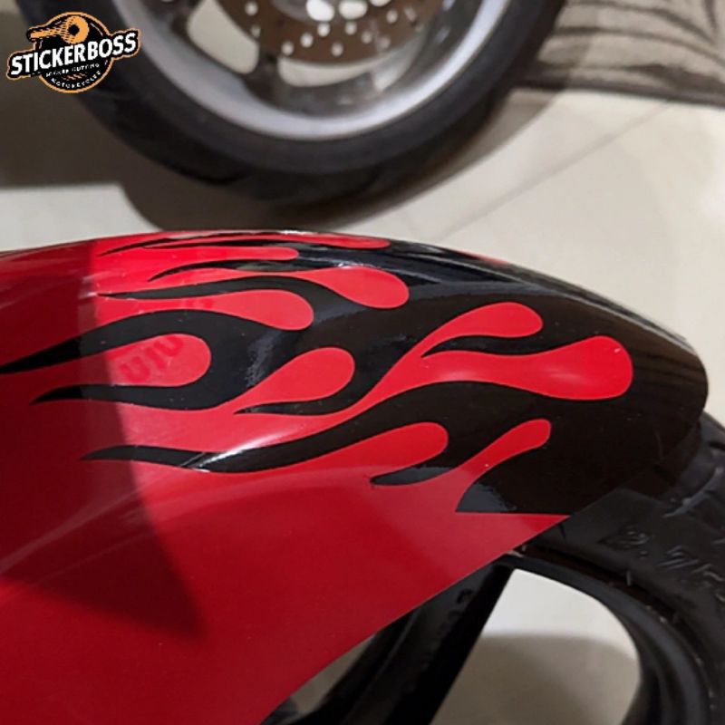 Sticker Motor Spakbor Tribal Flame 4ppi Anti Air - Sticker Motor Cutting Variasi Motor Hologr kuningan mengkilap STG