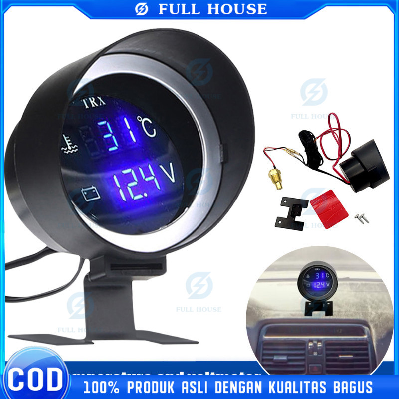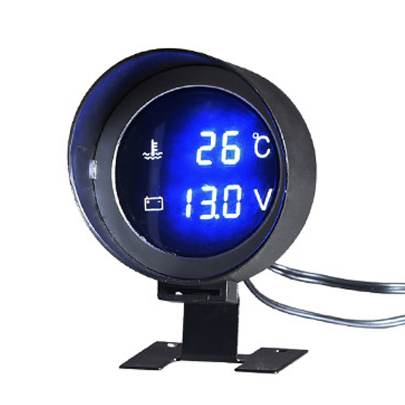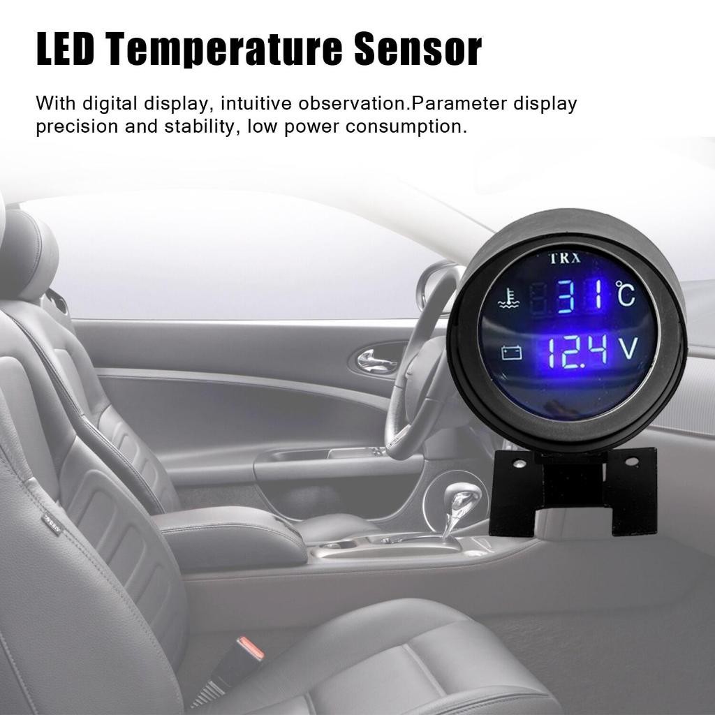 Pengukur Suhu Sensor Temperatur Mobil Digital, Pengukur Voltase Sensor Temperatur Moto + Voltmeter LED Bulat 2 In 1 12V 24V