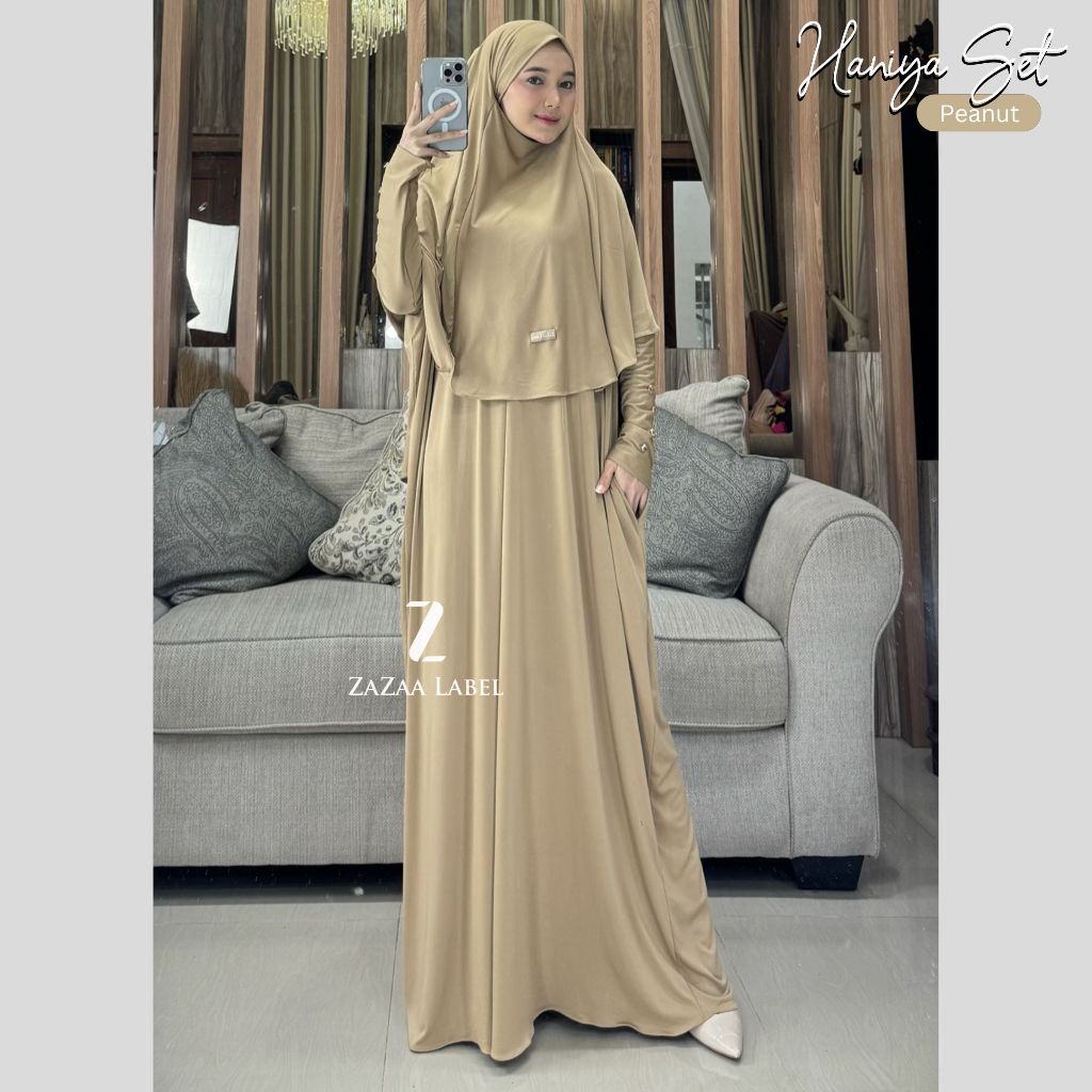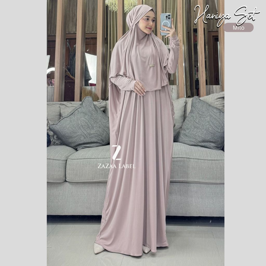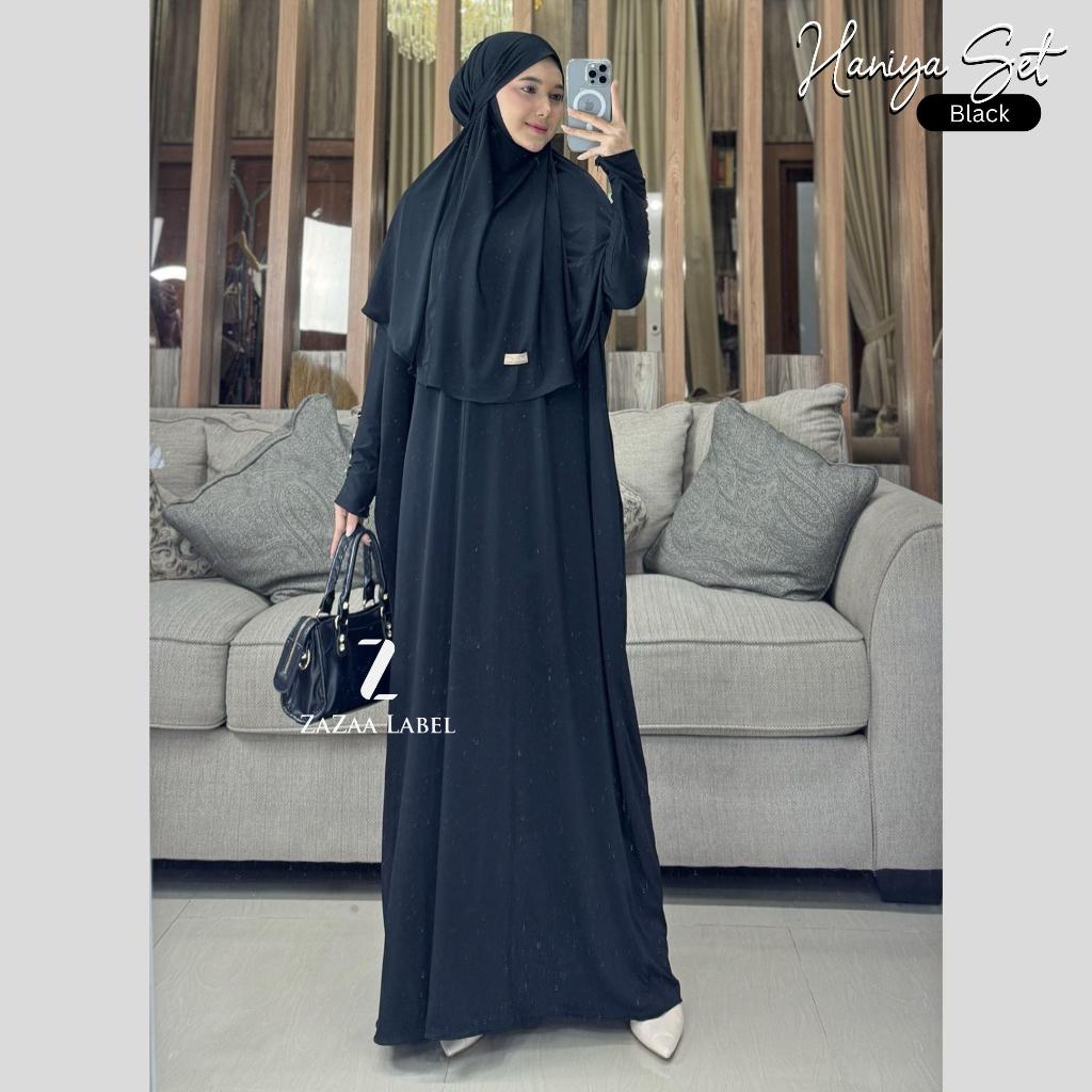 abaya set hijab batwing casual wanita busui polos