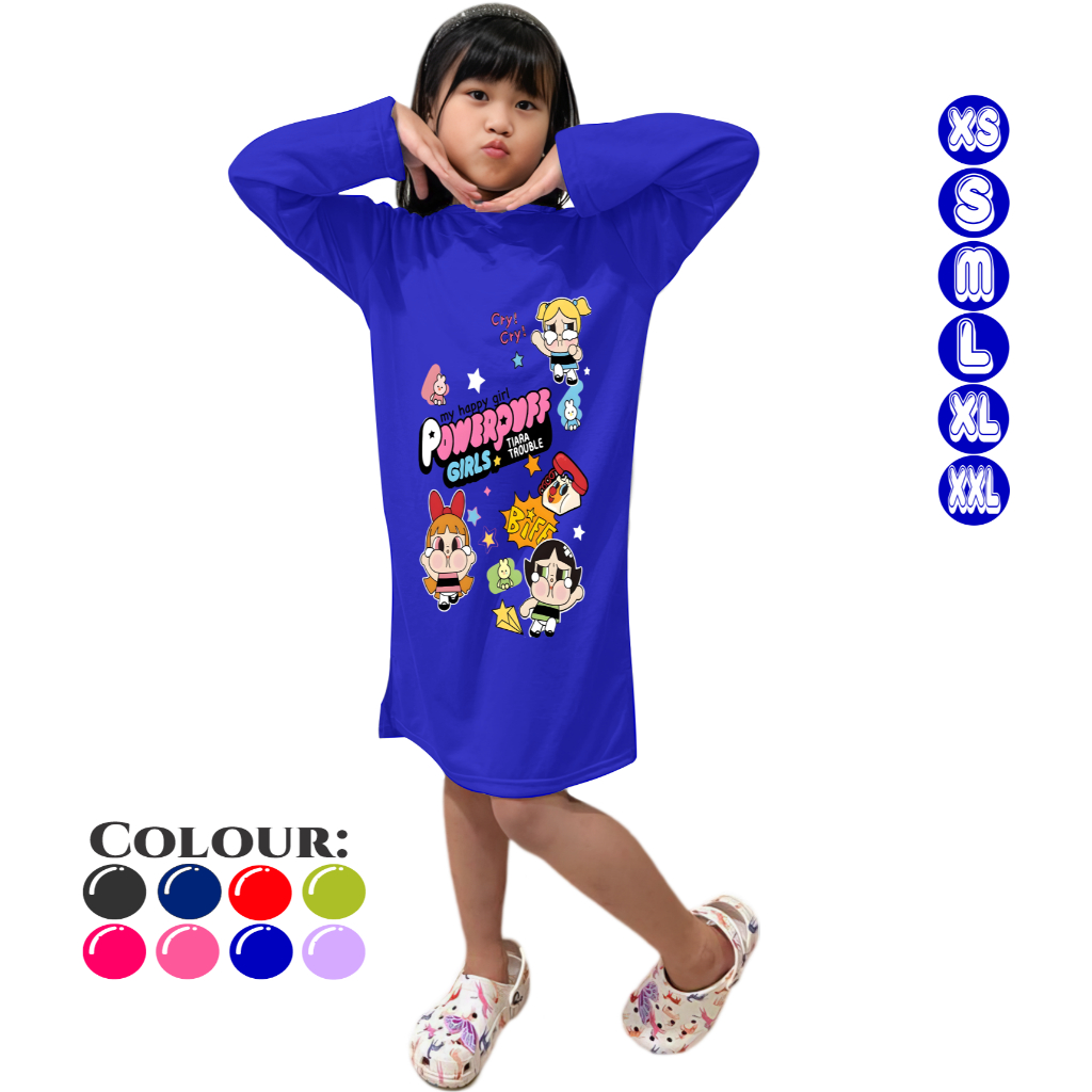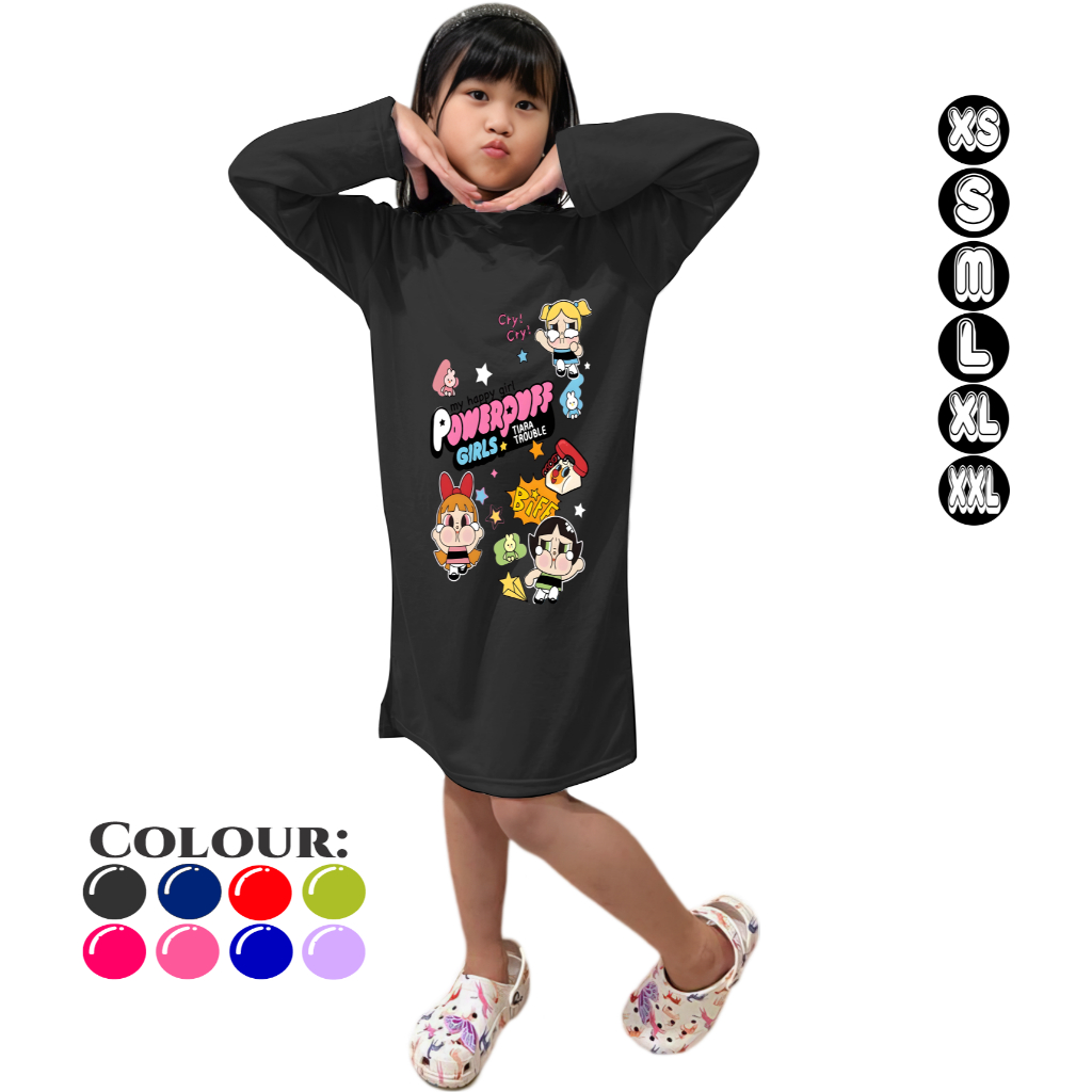 Tunic Anak Perempuan Lengan Panjang Umur 3-15 Tahun CRYBABY POWERPUFF GIRLS