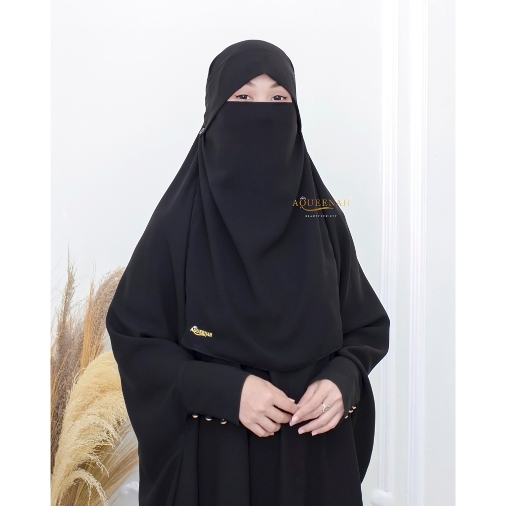 Aqueenah - Cadar Khaulah Niqab Poni Kancing Sifon Silk Jetblack Premium