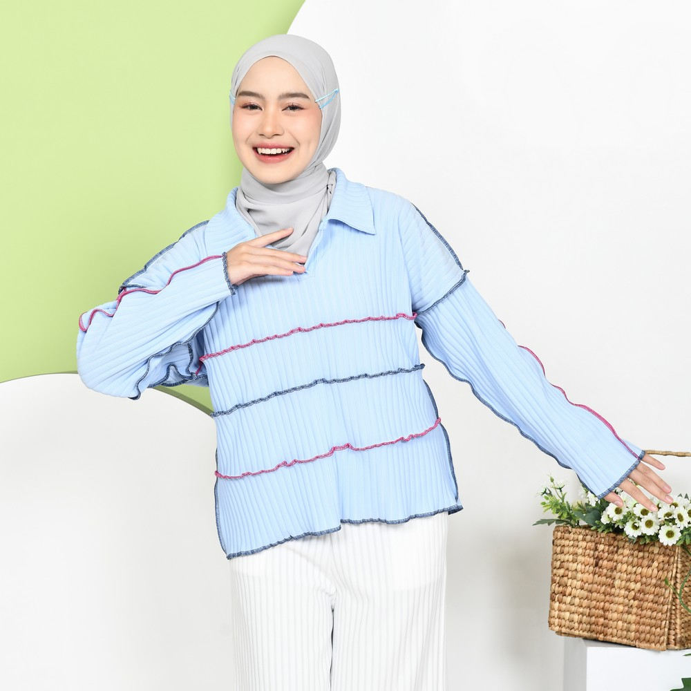 Mybamus Yuna Playfull Knit Tops – Atasan Muslim Wanita – Blus Knit Lengan Panjang