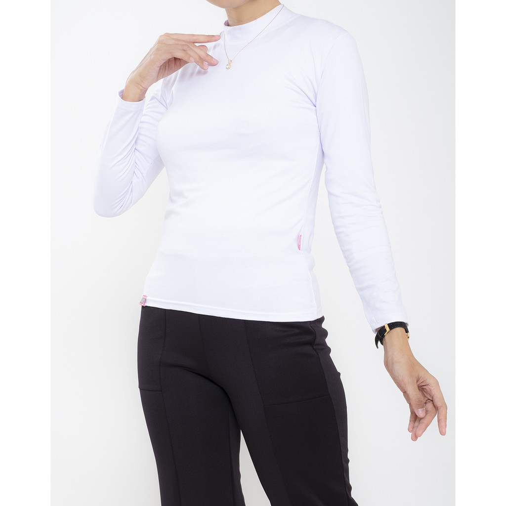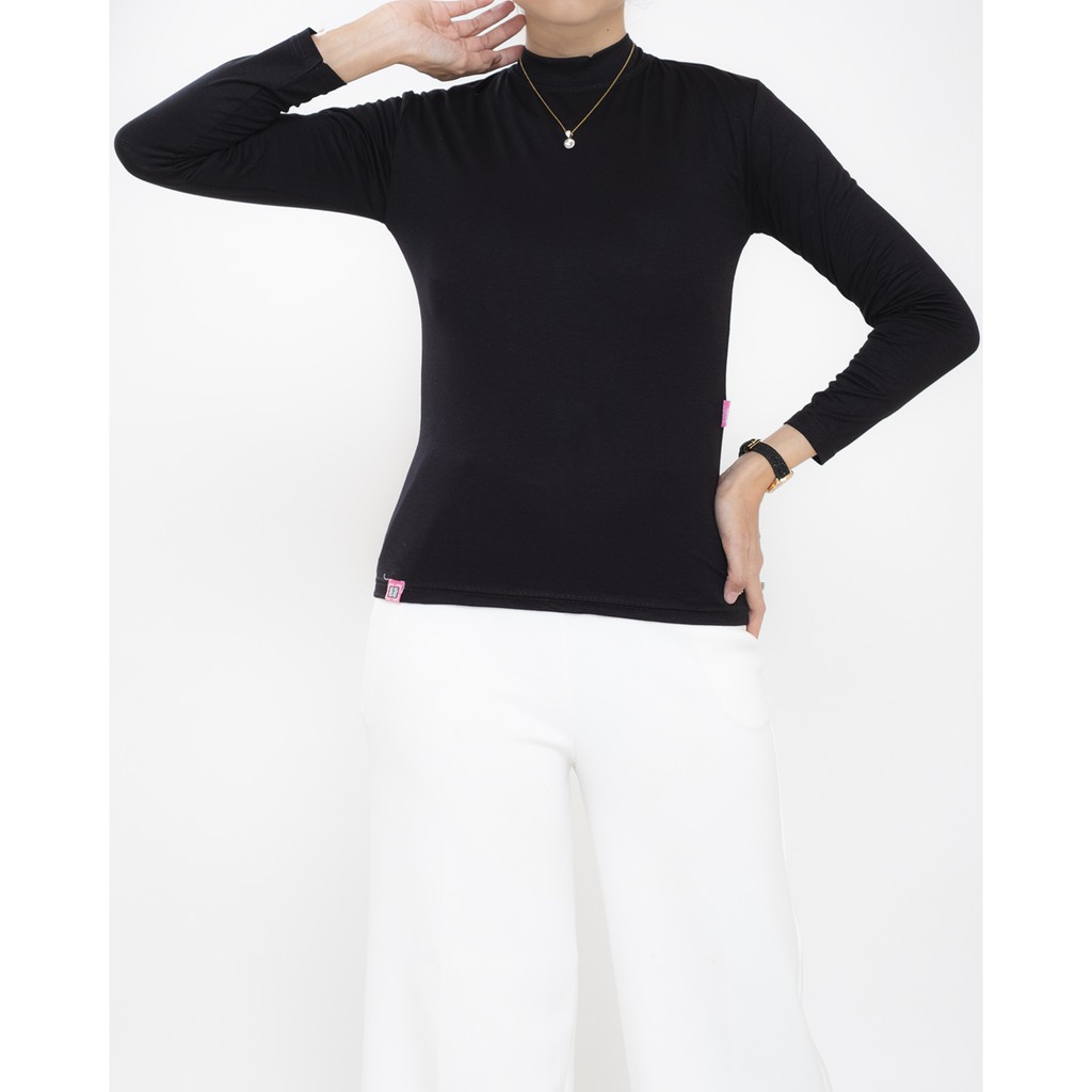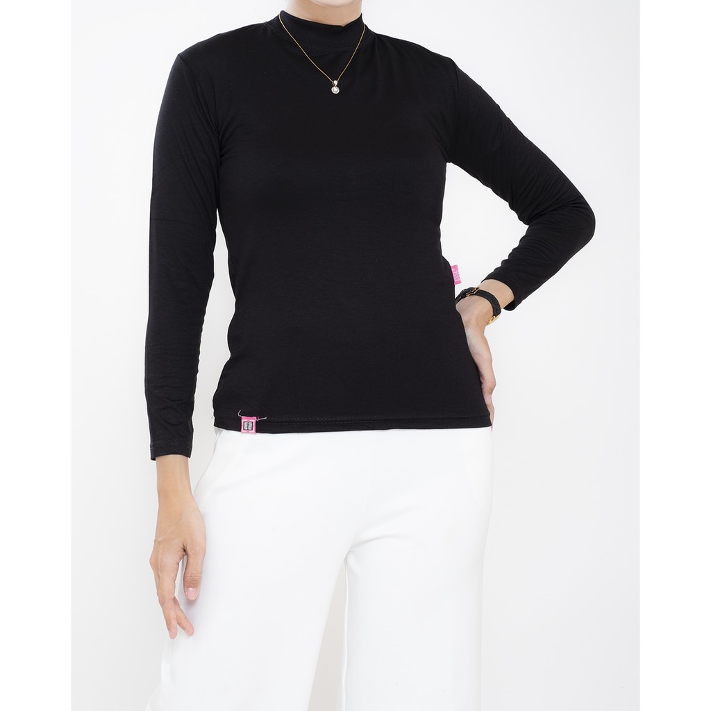 HaymeeIDN - Baju Manset Wanita Lengan Panjang Inner Dalaman Cewek Bahan Kaos Hitam dan Putih
