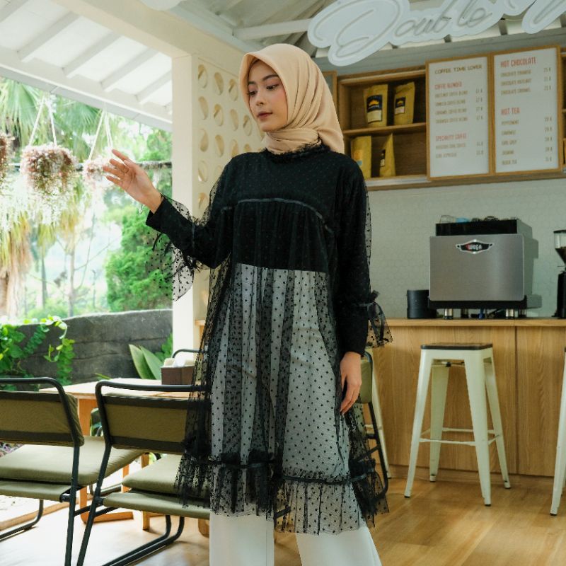 MARIA COLLECTION Elmira Outer - Tunik Brukat Tile Polkadot wanita Outfit Kondangan wisuda lamaran All Size