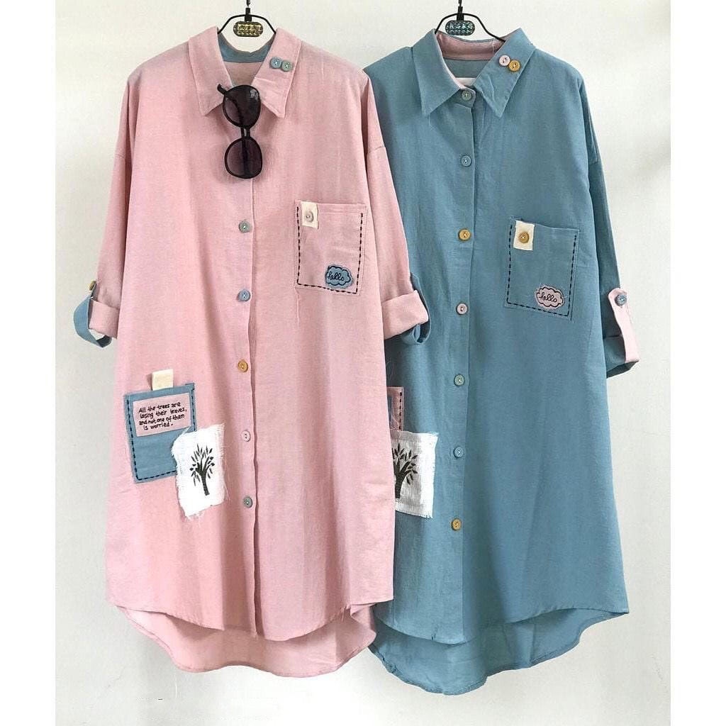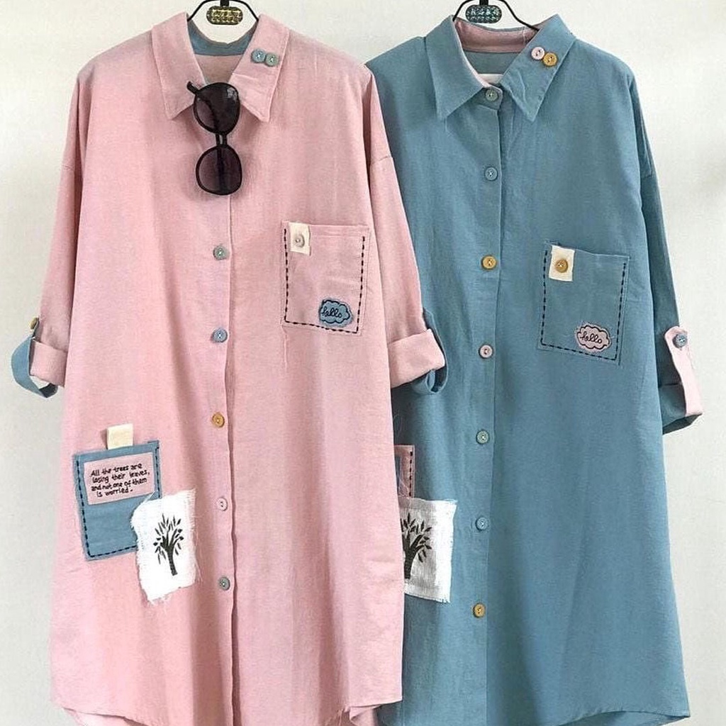 Vallina Outfit - Miya Long Tunik Patch Pocket Atasan Wanita Muslim Modern Linen Rami Crinkle Premium