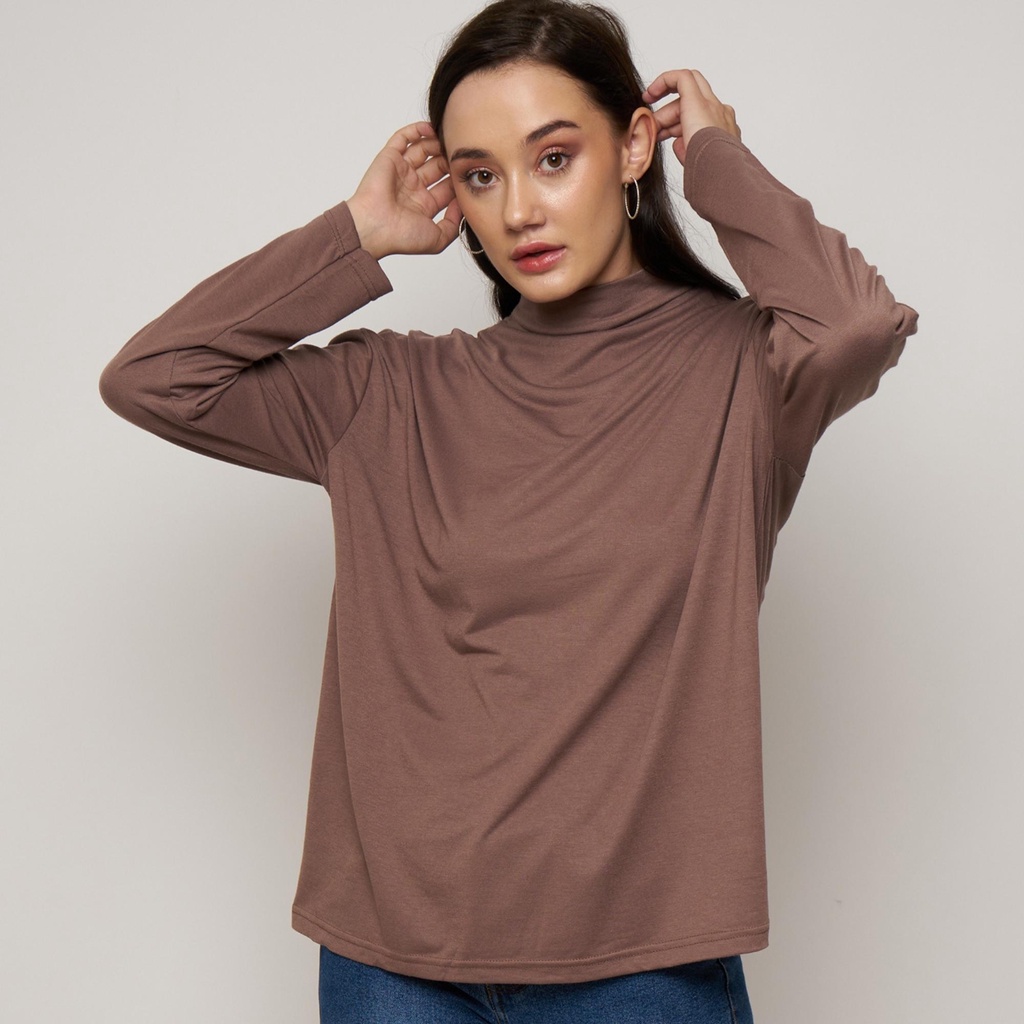 Monellina MANSET Kaos Oversize Wanita Lengan Panjang Turtleneck