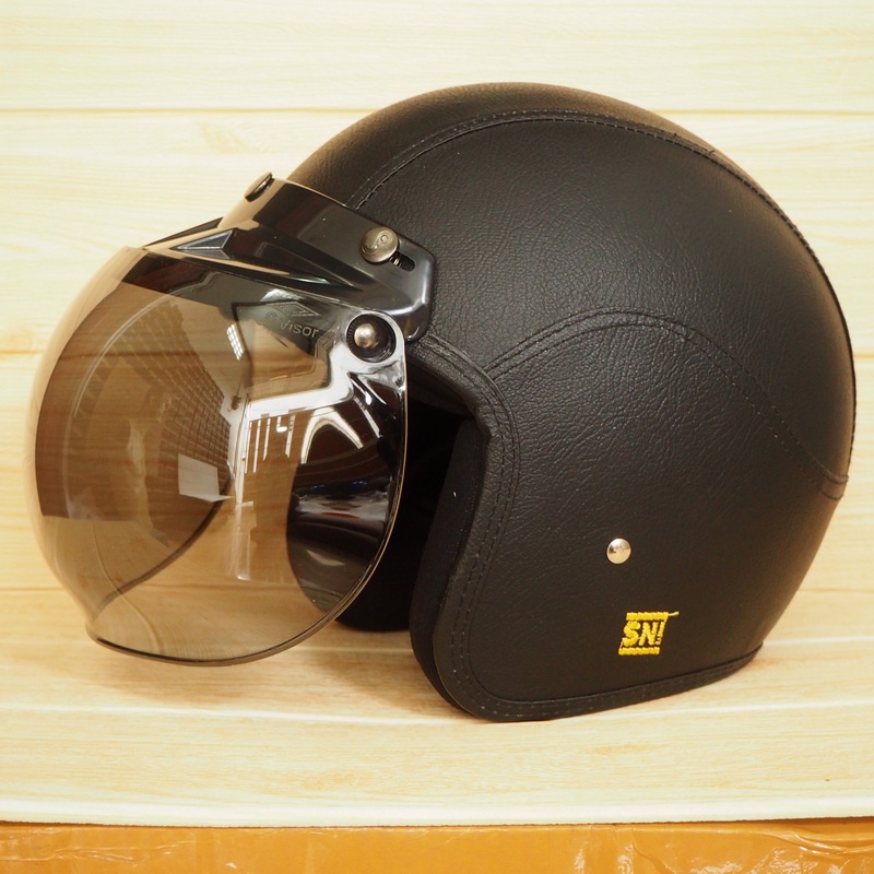 BOGO HELM BOGGO CLASSIC GLOSSY SNI DEWASA PRIA DAN WANITA HELMET RETRO KLASIK LEATHER SINTETIS KACA DATAR CEMBUNG WARNA COKLAT MUDATUA