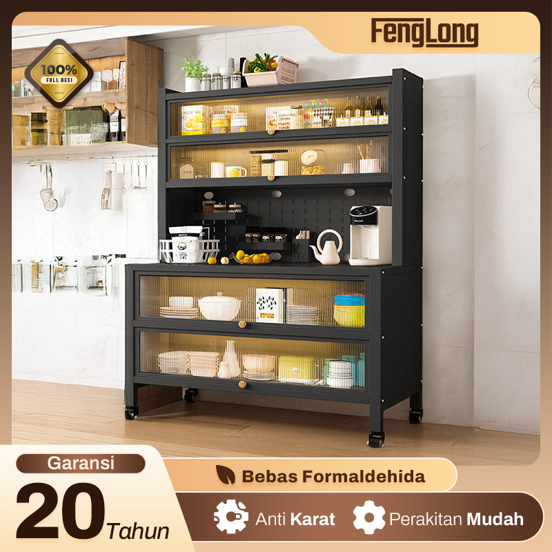 [New] Rak Piring Feng Long Lemari DapurTertutup Full Plat Besi Murah Kaca Kramik Rak Piring Minimalis Moderen