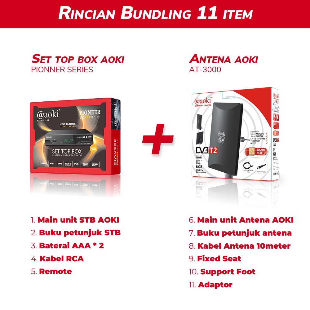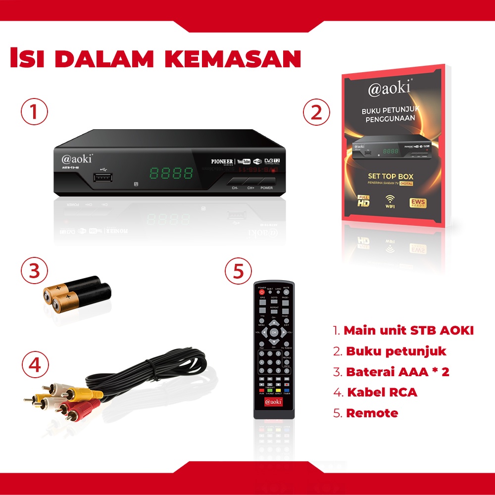 AOKI Bundling STB Set Top Box TV Digital Receiver Penerima Siaran Full HD STB Wifi Bisa Youtube DVB T2 STP (Bisa dapet semua channel) RCA Stereo VGA HDMI USB Optik