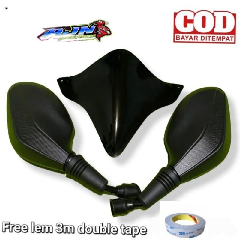 paket murah visor variasi honda beat deluxe plus kaca spion click hitam polos universal
