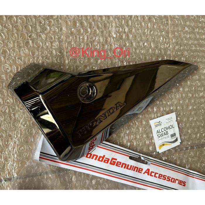 GARNISH COVER MUFFLER / HIASAN TUTUP KNALPOT VARIO 160 ORI - Black Chrome 90℅ Original AHM