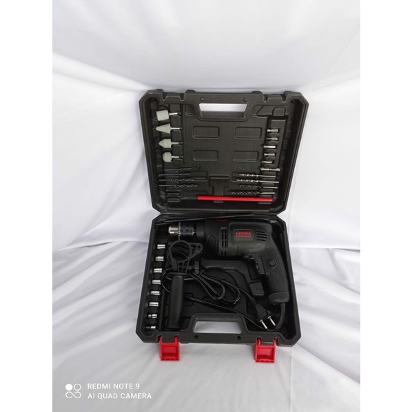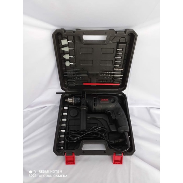 impact drill uchiha 13mm mesin bor beton besi kayu full set koper