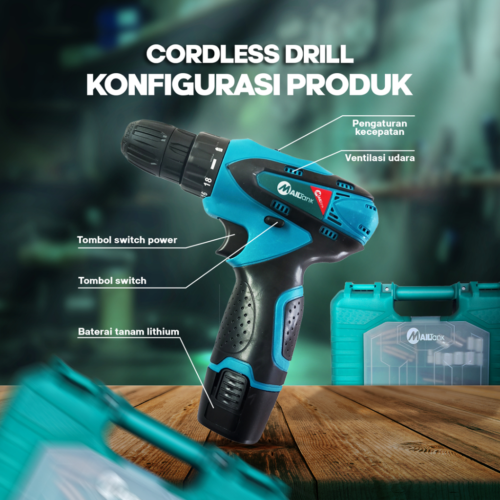 Mailtank SH191 12V Bor Baterai 2baterai bor cas 1 set lengkap murah mesin bor tangan Mesin Bor dengan Koper dan Set Mata